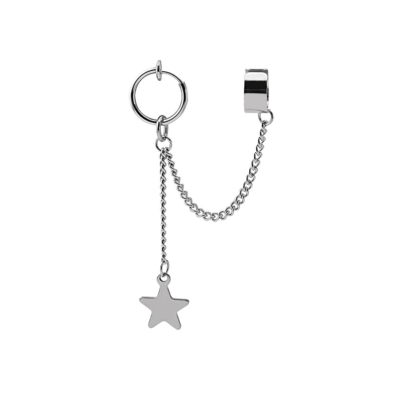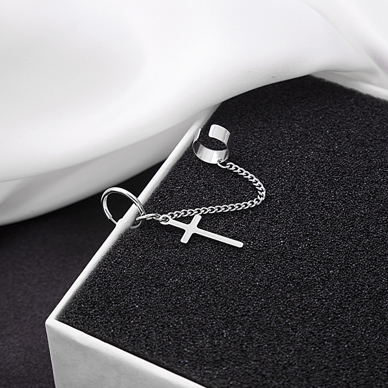 Cool Dark Cross Stainless Steel Chain Ear Cuff Earrings for Couples