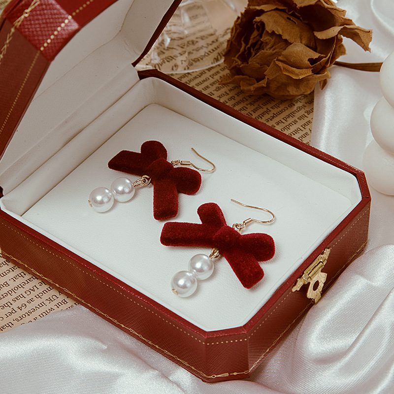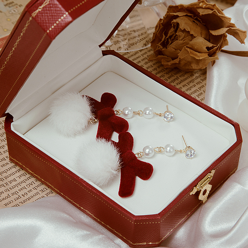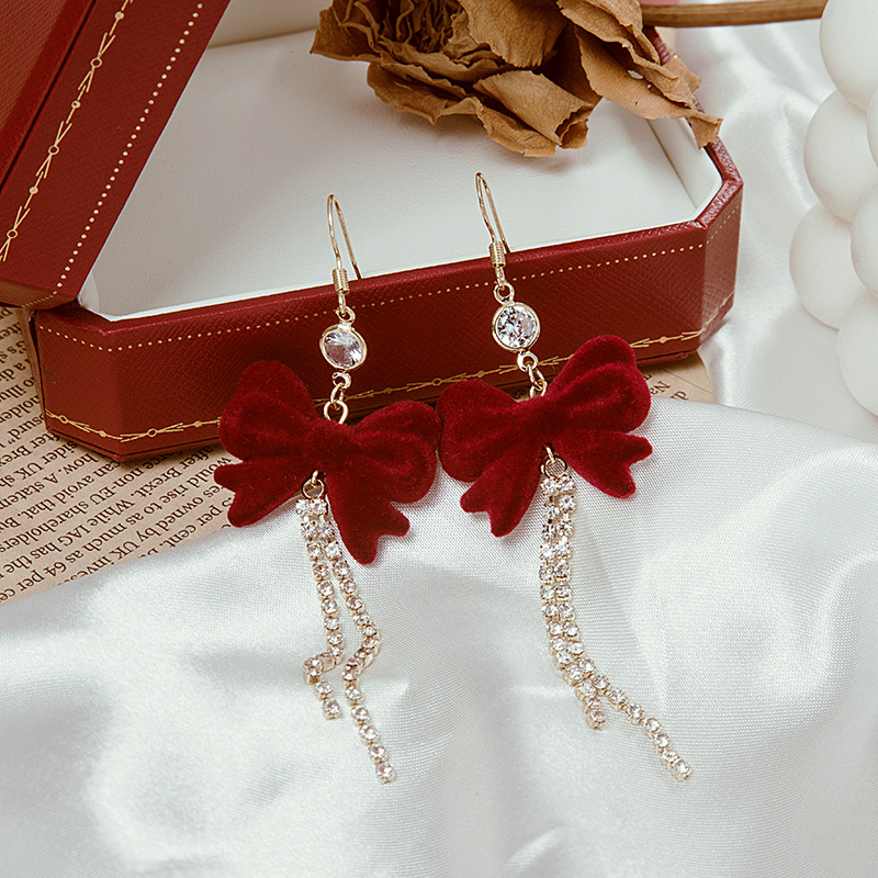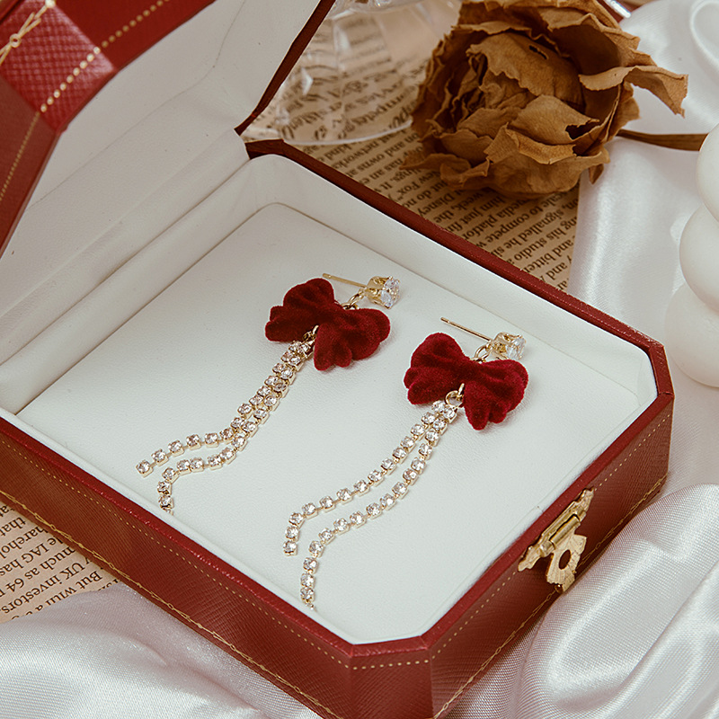 Vintage Chinese Style Red Earrings with Silver Needles and Tassels for New Year