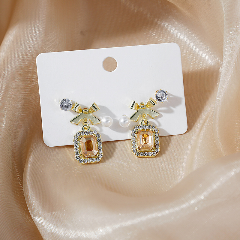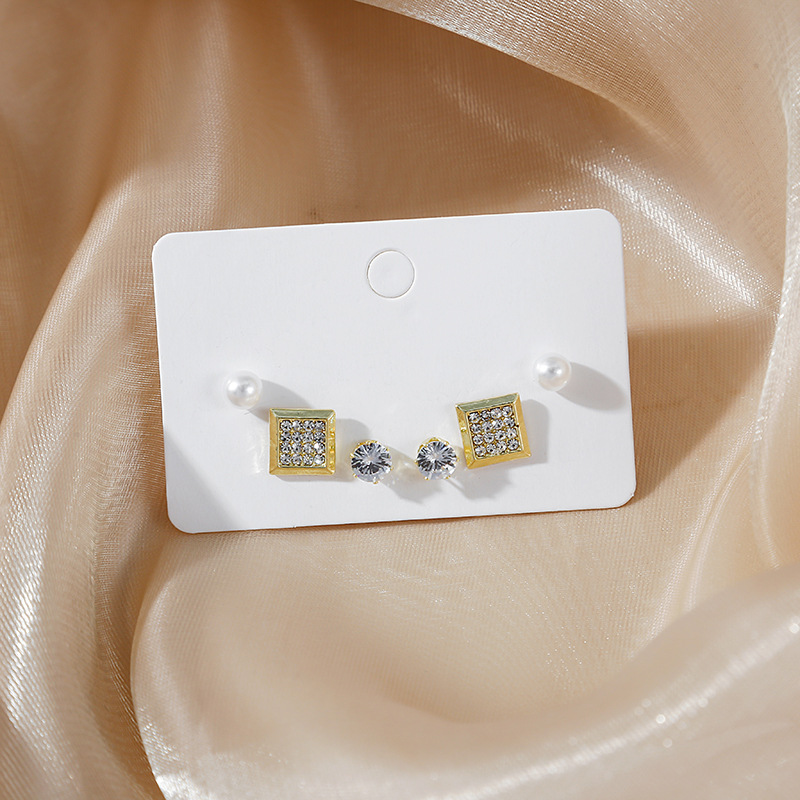 Silver Alloy Geometric Jewelry Set with Zircon, Square and Butterfly Shapes