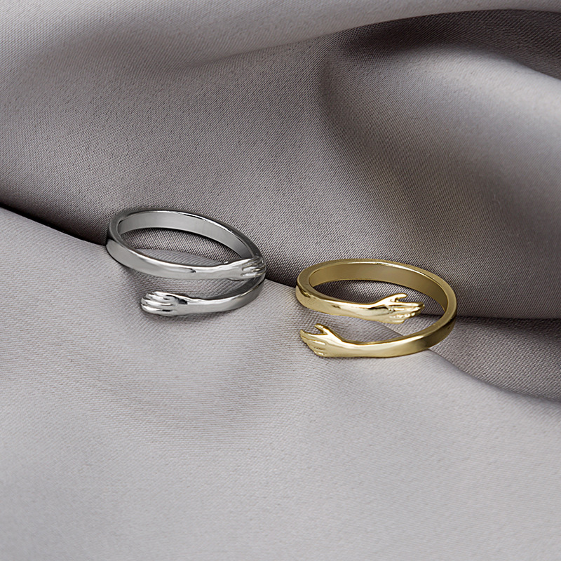 Romantic Double Hand Ring with Alloy Material and Geometric Shape for Women