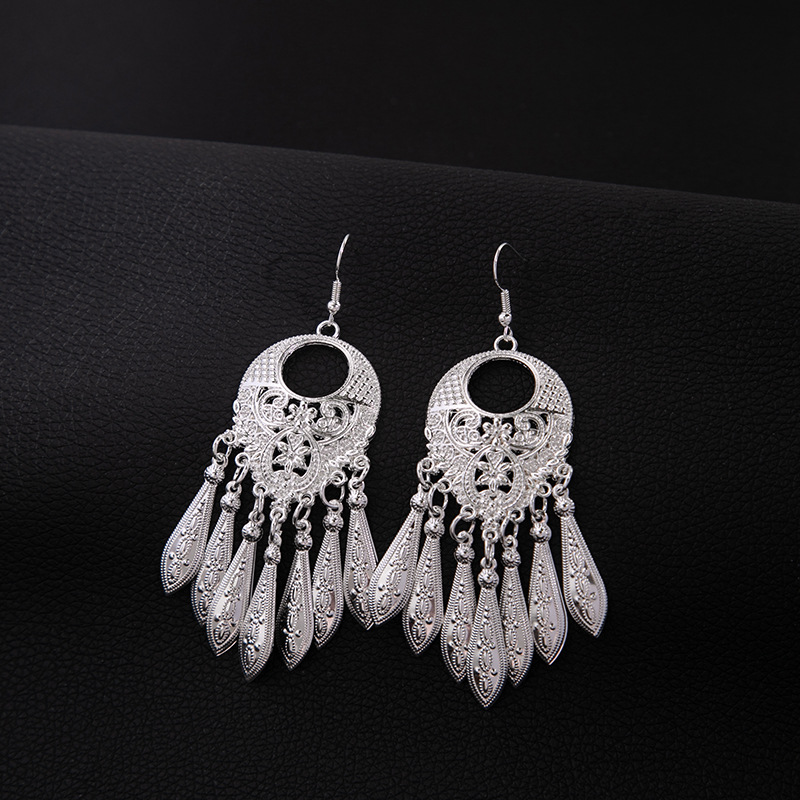 Silver Tribal Earrings with Bohemian Tree Leaf Tassel Earrings