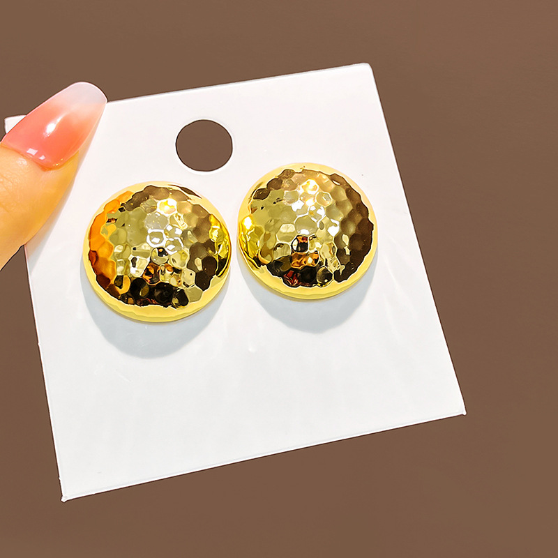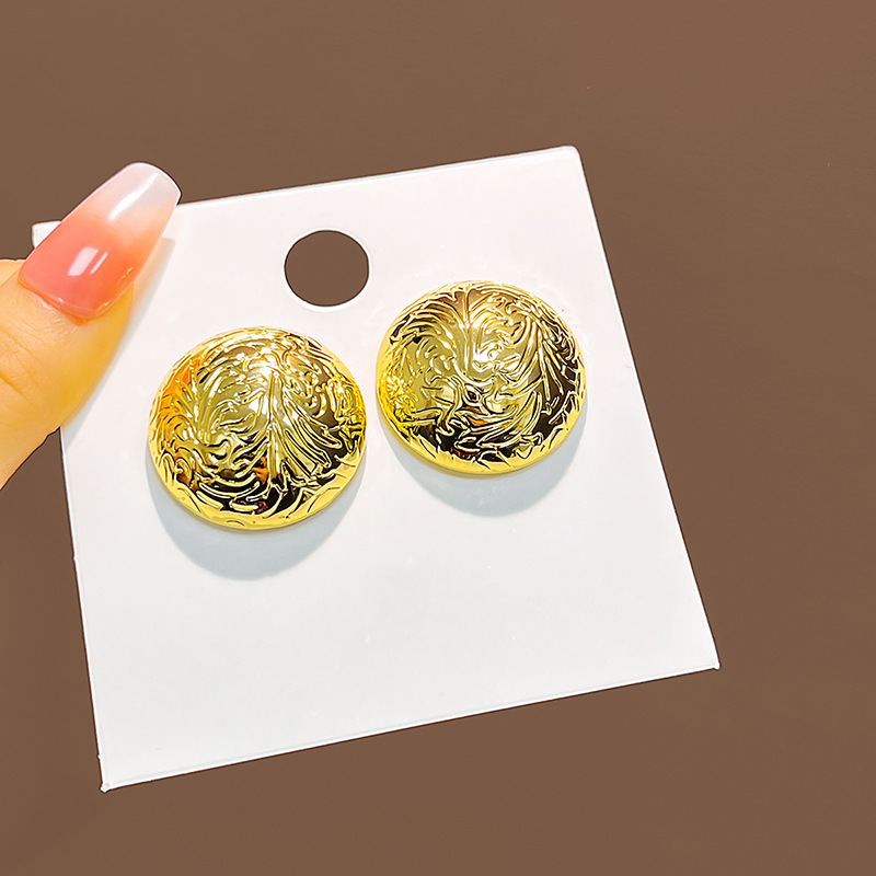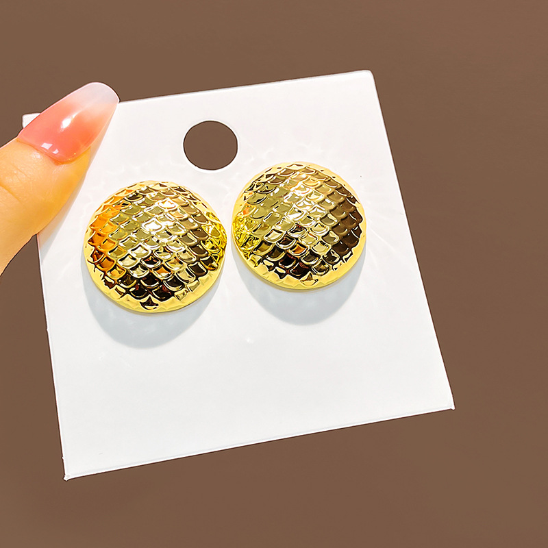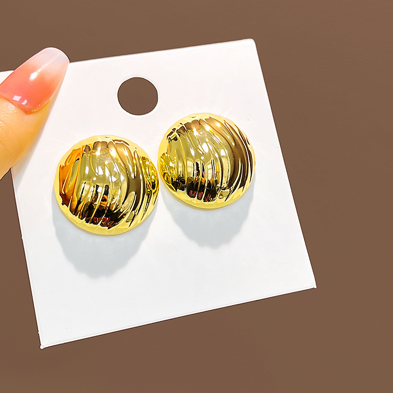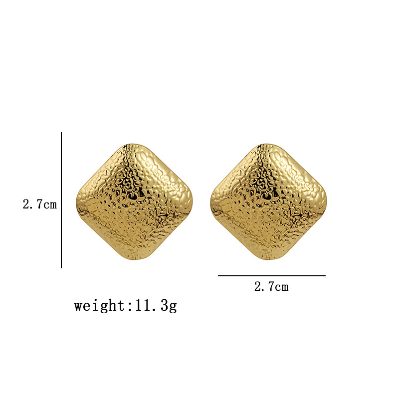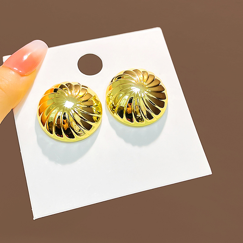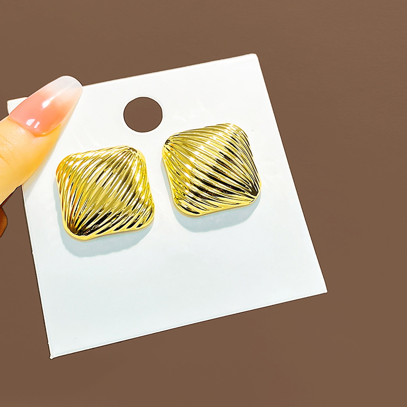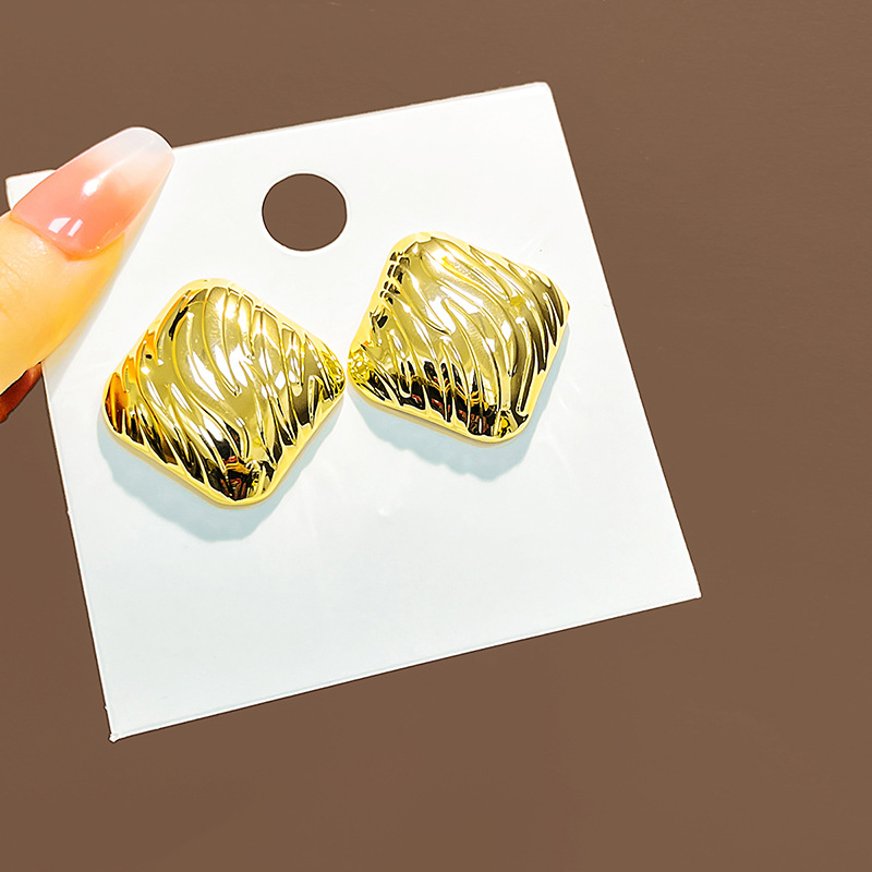 Retro Geometric Metal Earrings with Wave Texture for Women