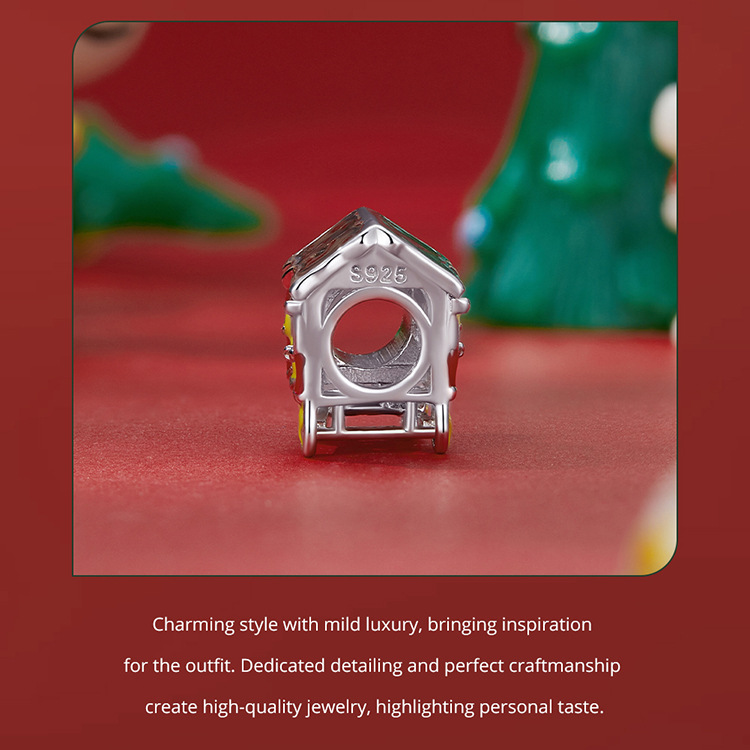 925 Silver Christmas Truck Bead Bracelet with White Gold Plating and Natural Style