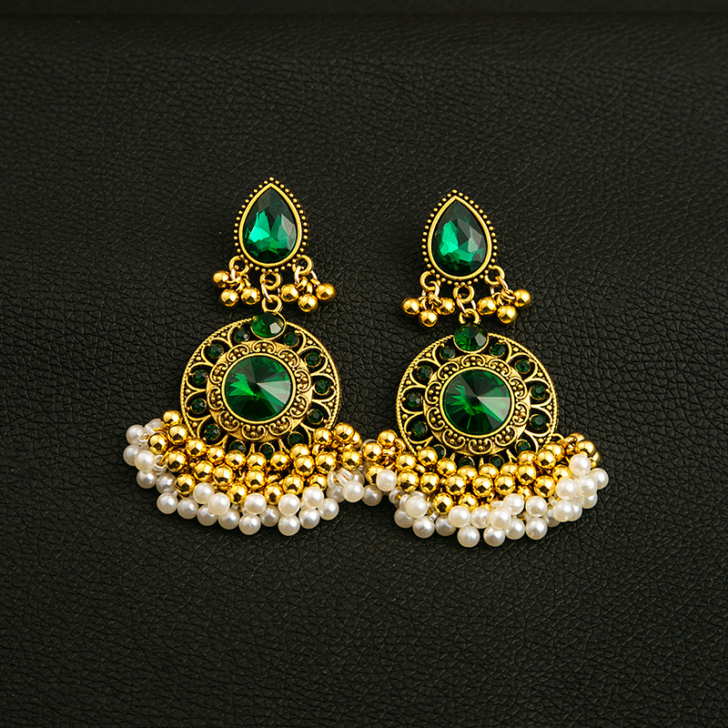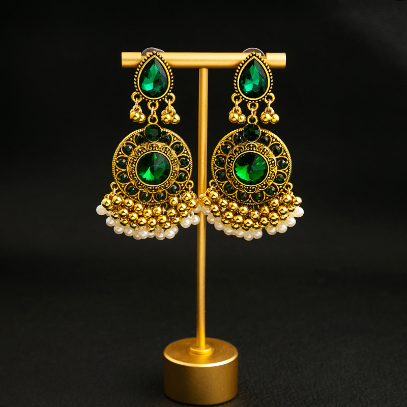 - ["High End Luxury Diamonds and Tassel","Vintage Grandma Green Gemstone","Circle Shape Design","Alloy Material, durable and comfortable","Perfect for Women"]