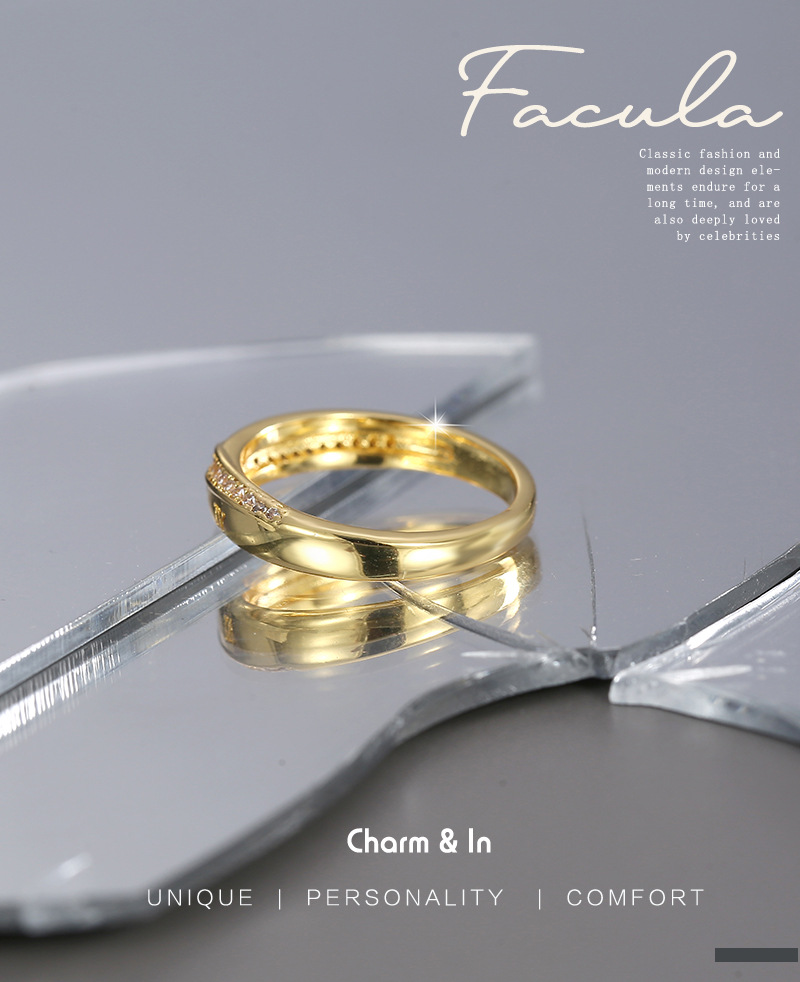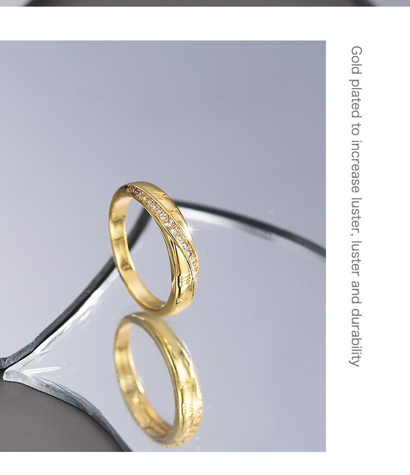 Fashionable Roman Numeral Ring for Women with Copper Plating and Real Gold Micro-Inlay Zircon Stones