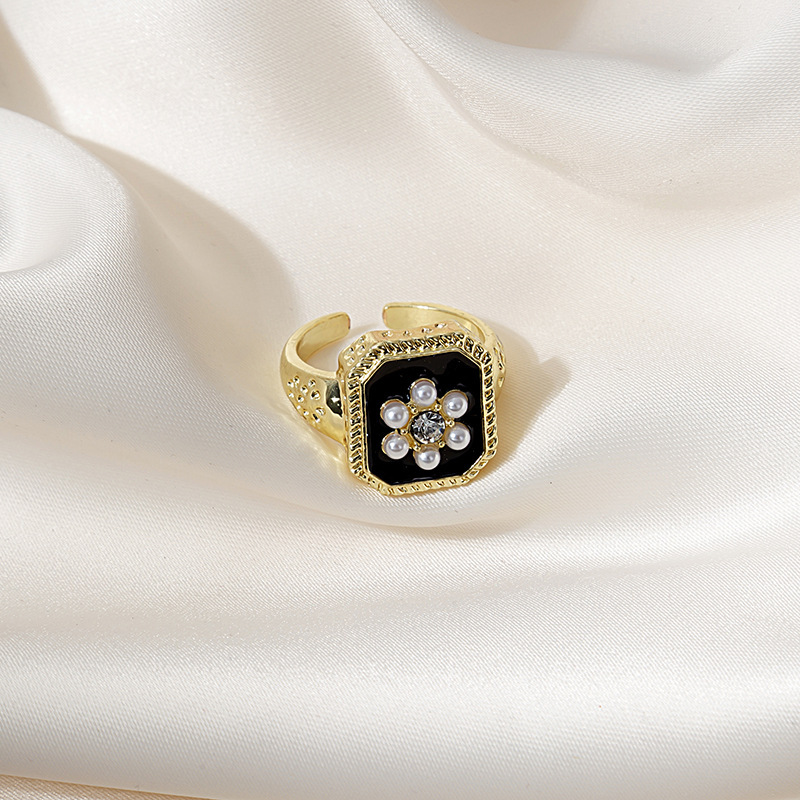 - ["Made of alloy, durable and long-lasting","Square shape with wide flower design","Set with diamonds and pearls","Not fading, perfect for daily wear"]