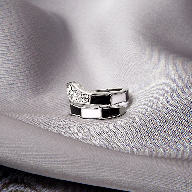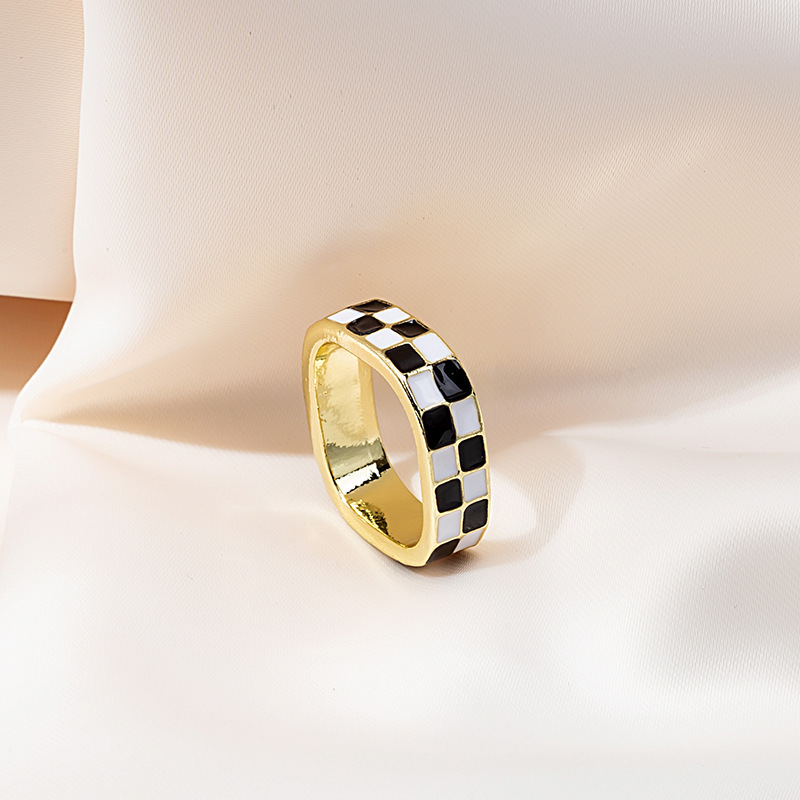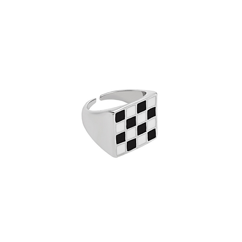 Black & White Chessboard Ring Set with Diamonds and Pearls in Square Shape and Wide Flower Design, Not Fading