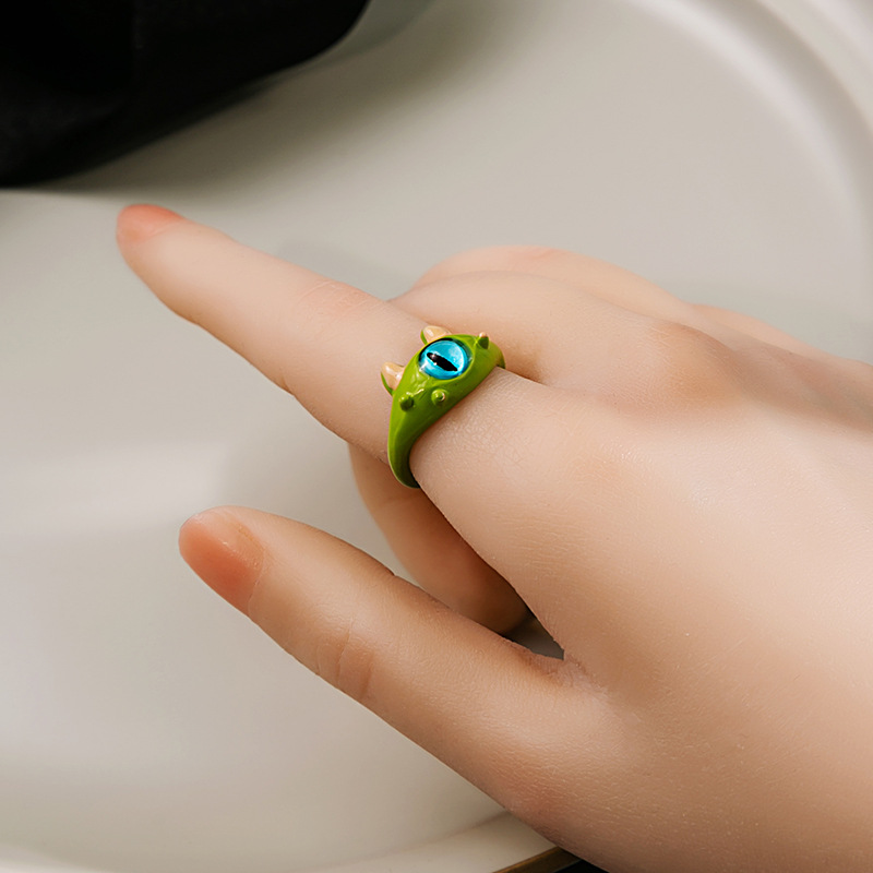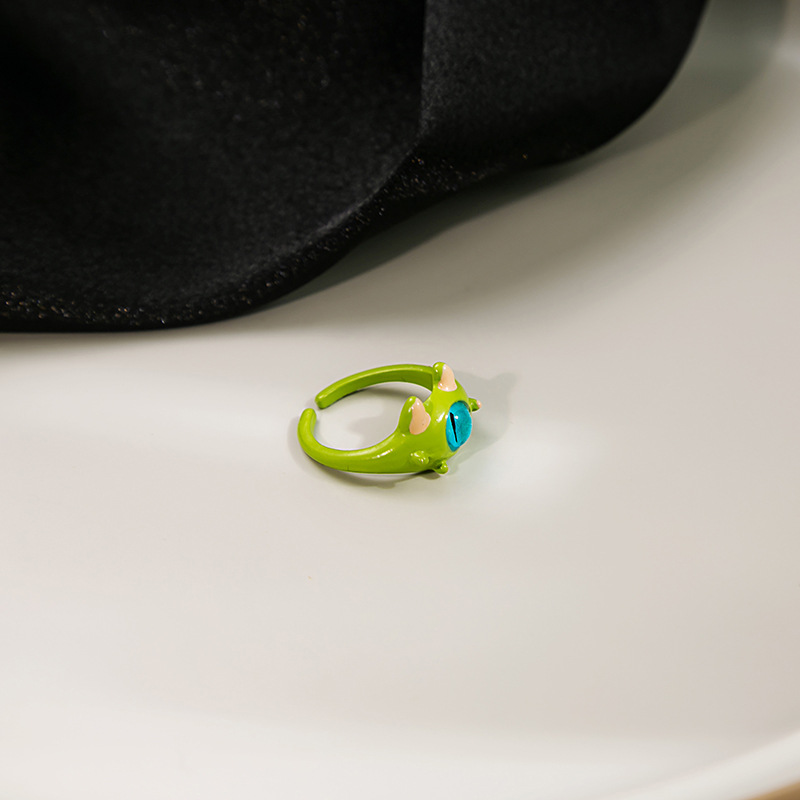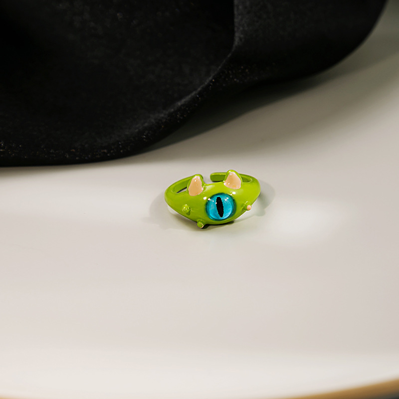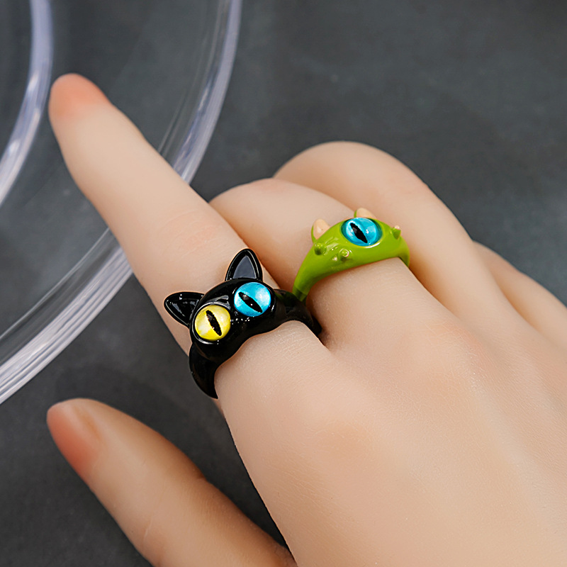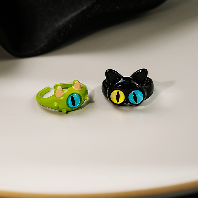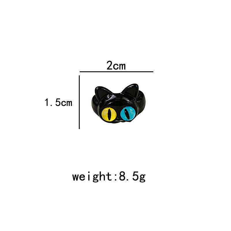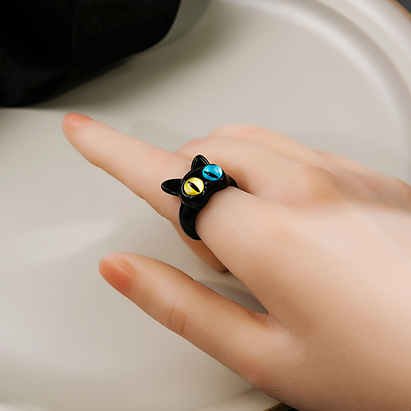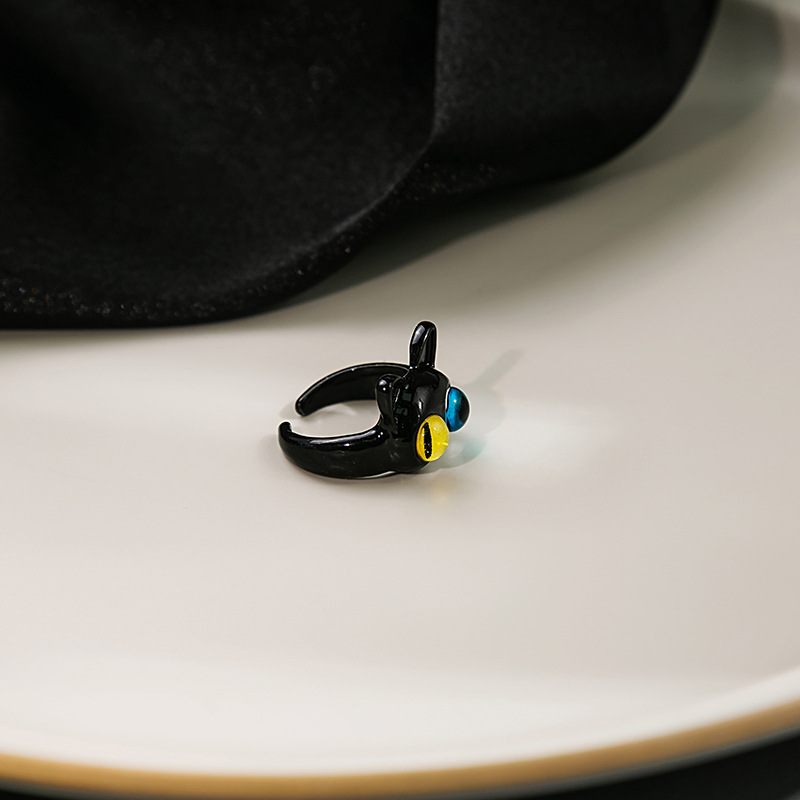 Cute Cartoon Black Cat Ring with Big Eyes and Small Cat Finger Jewelry