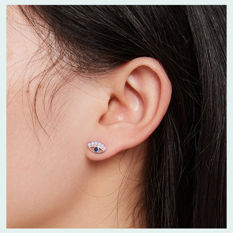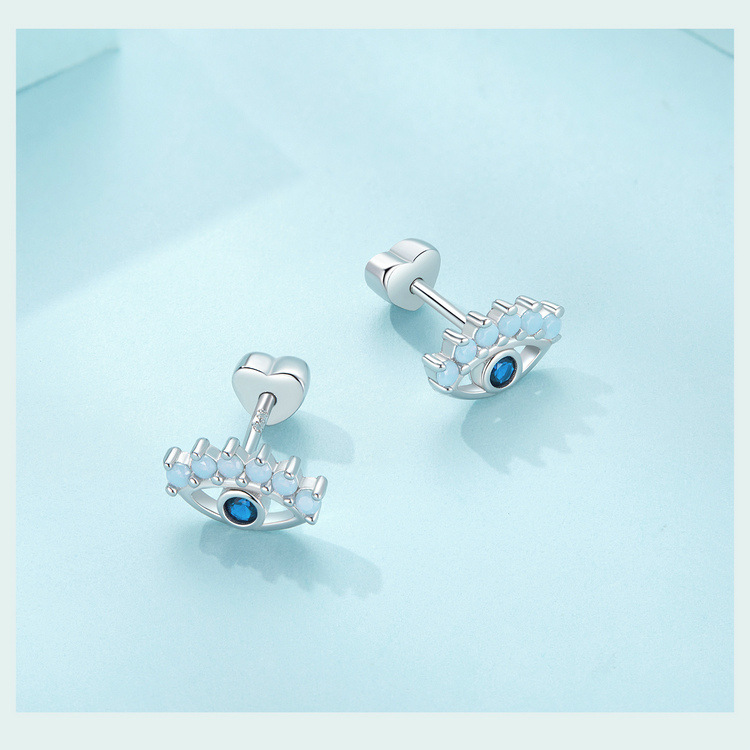 - ["925 Silver Plated White Gold Material","Hot Selling Aifule Devil Eye Earrings","Personality Style Design","Suitable for Women","High Quality and Durable"]