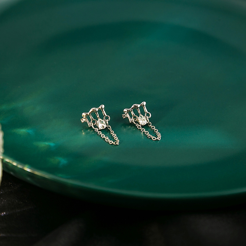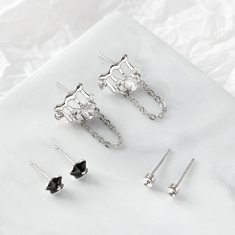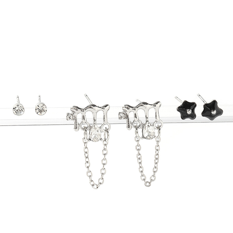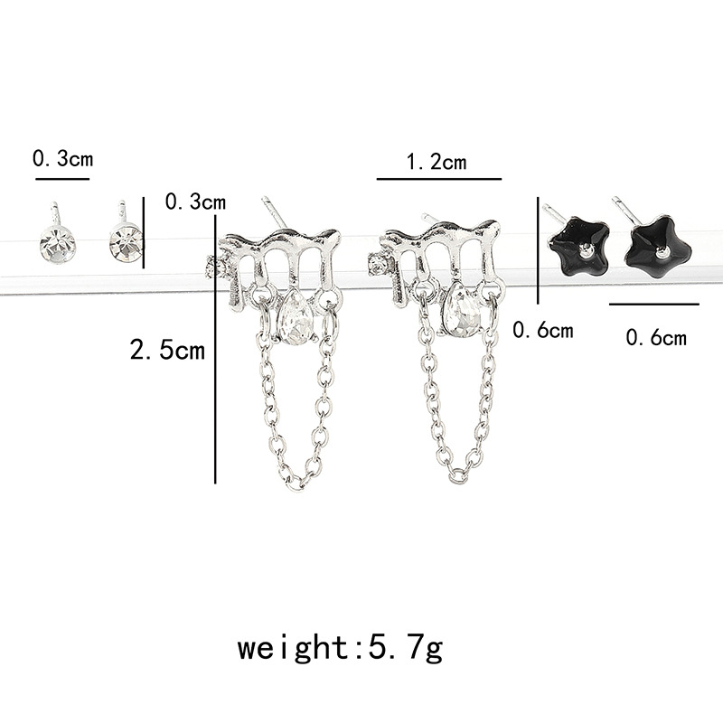 Silver Tassel Earrings Set with Star Shape, Five-Pointed Star Element and Fresh and Sweet Style