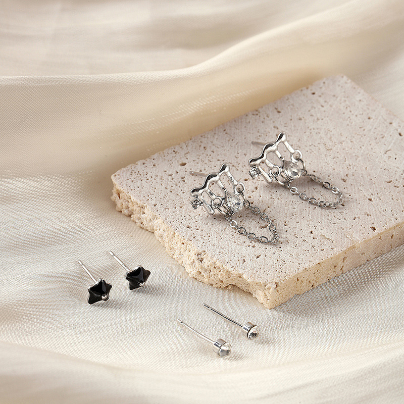 - ["Made of high quality alloy material","Star shape design with five-pointed star element","Fresh and sweet style","Suitable for women","Highly fashionable and stylish"]