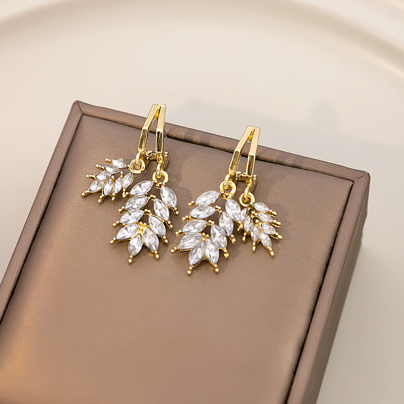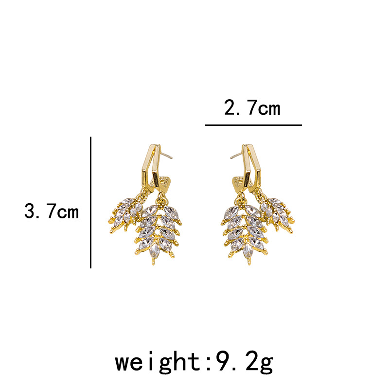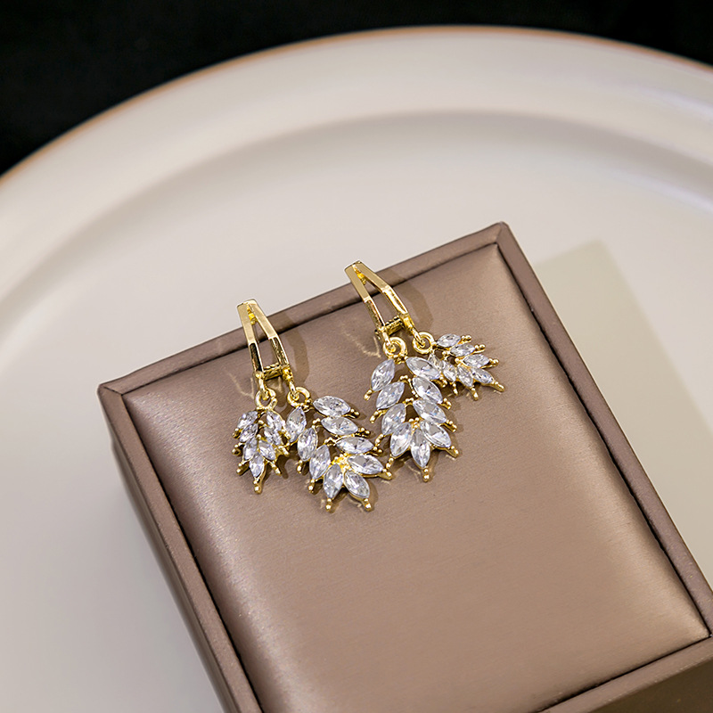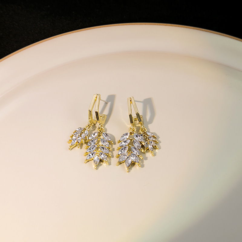 Silver Needle Light Luxury Fashion Wheat Earrings with Diamonds for Women