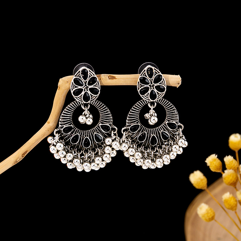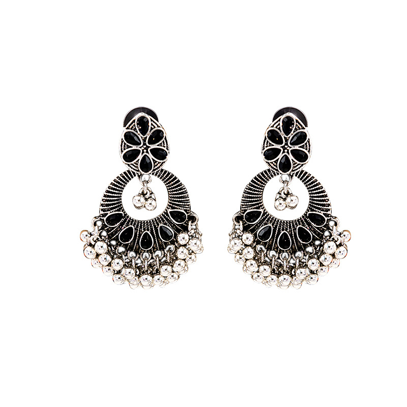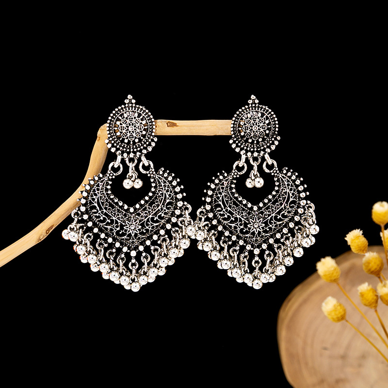 Silver Alloy Bohemian Wave Earrings with Dragon Phoenix Embroidery for Women