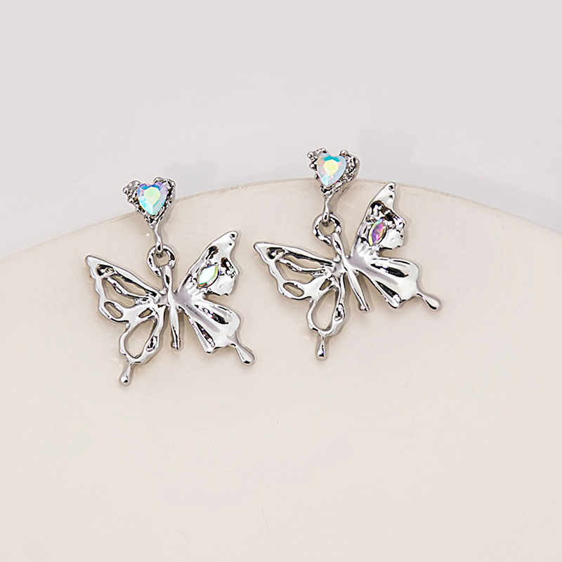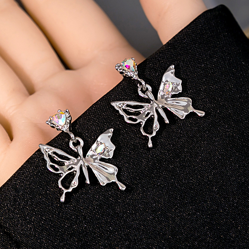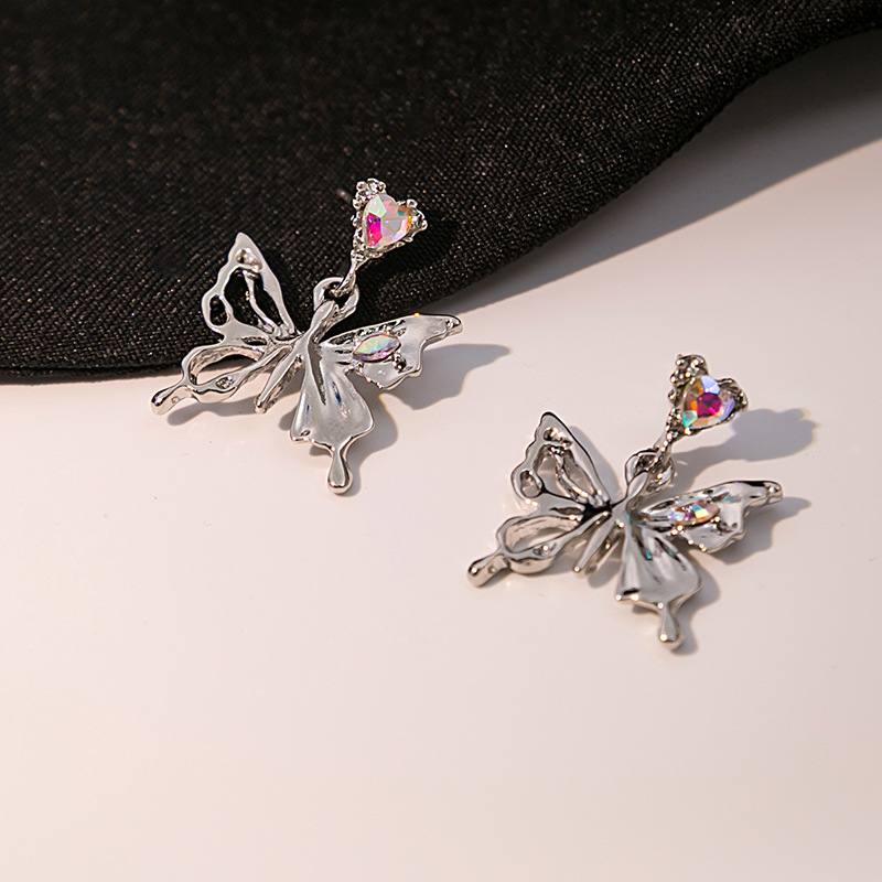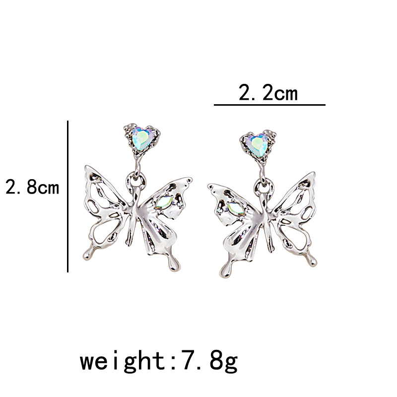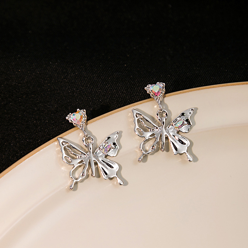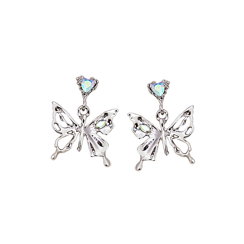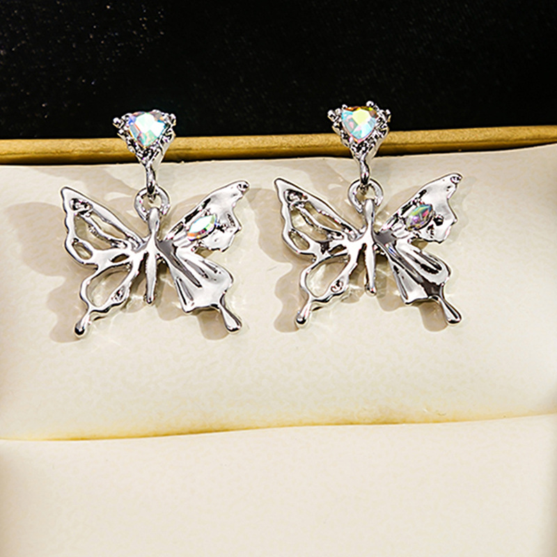 Silver Alloy Butterfly Earrings with Sparkling Crystals for Women