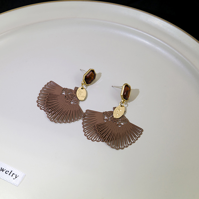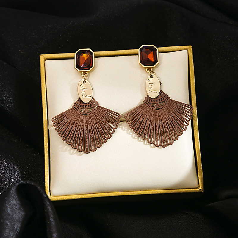 - ["High-quality materials and craftsmanship","Unique design with geometric hollow","Retro style with fan-shaped shape","Suitable for women","Elegant and stylish"]