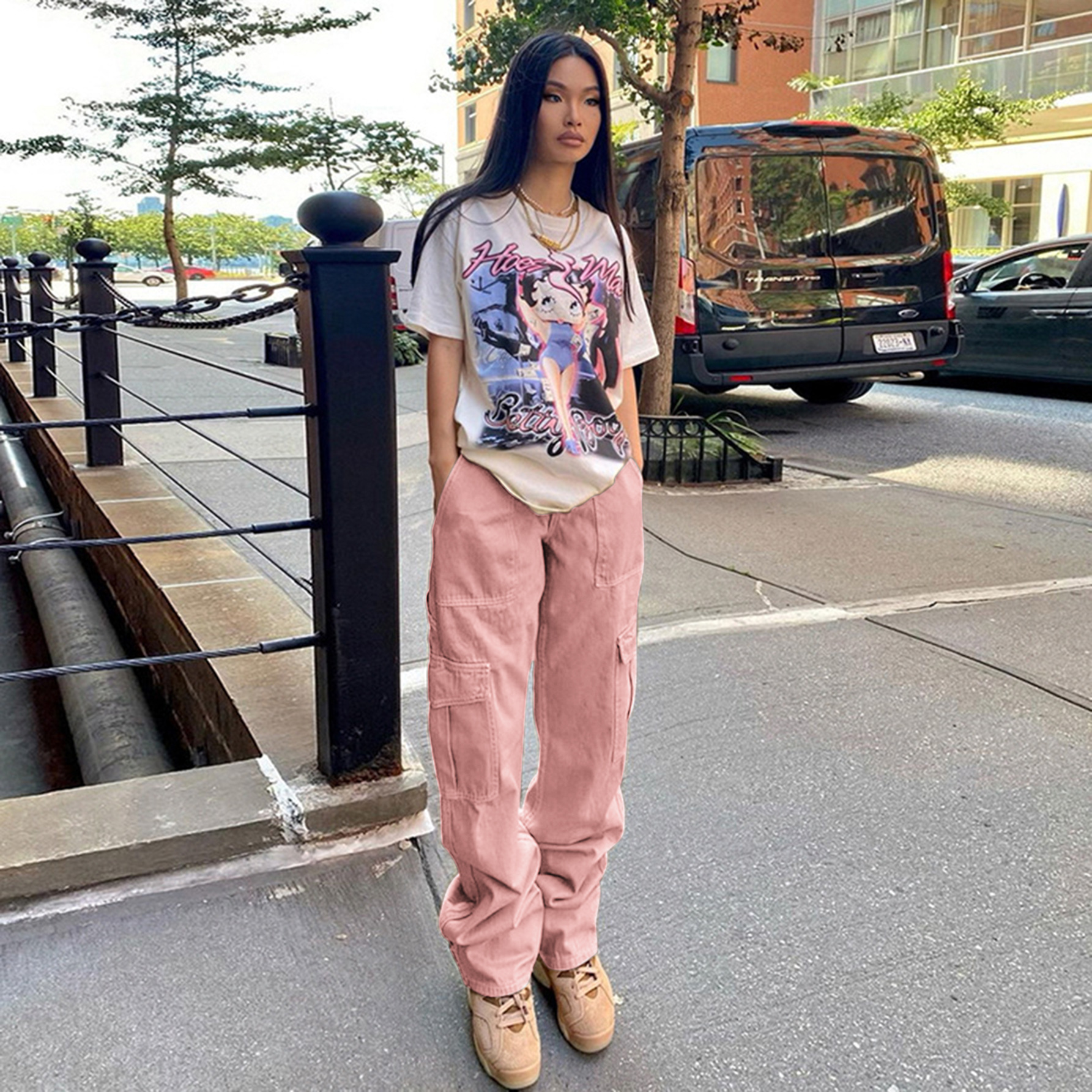 - ["Made with 90%-95% Cotton for comfort and durability","Mid Rise for a flattering fit","Medium weight for all-season wear","Straight leg for a timeless look","Streetwear style for a modern edge"]