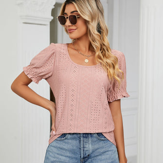 Summer New Hollow Princess Sleeve U-Neck Tee Women's Short Sleeve Top