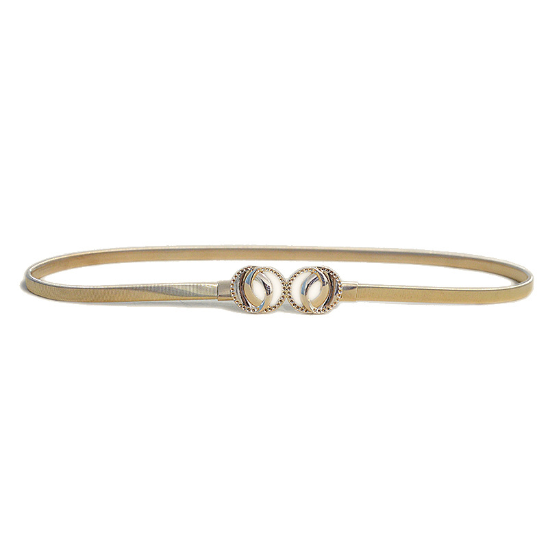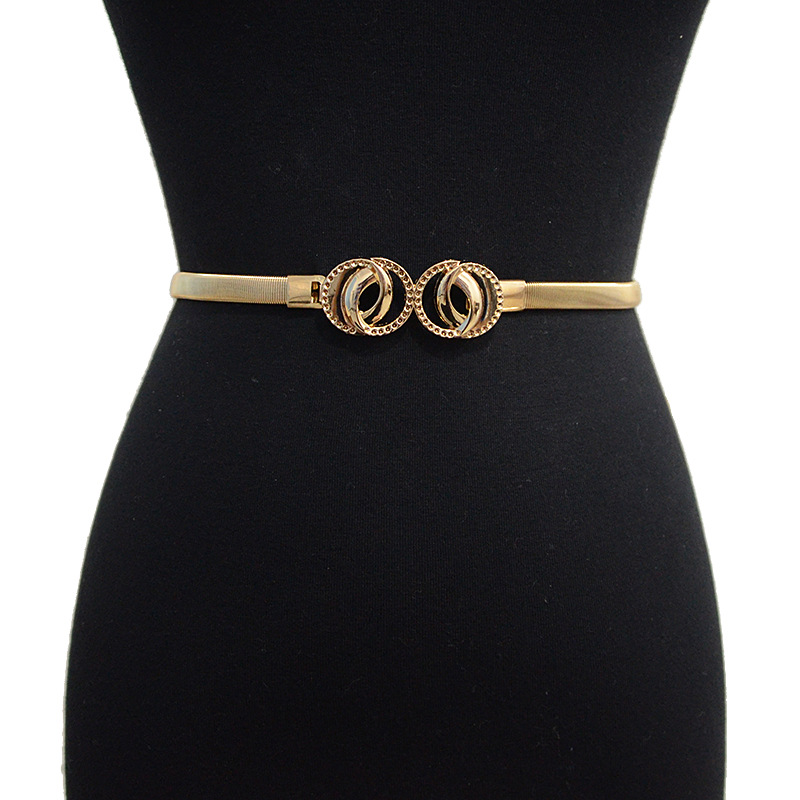 Women's Gold Metal Belt with Double Circle Decoration Elastic Waist Chain