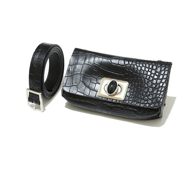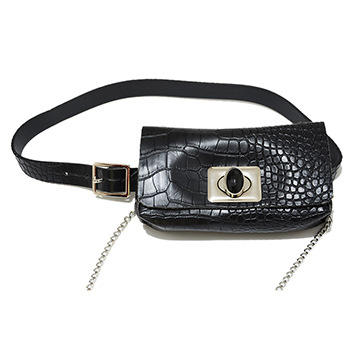 Women's Fashion Crocodile Pattern Waist Bag with Metal Buckle, 2-4cm Width, OPP Package