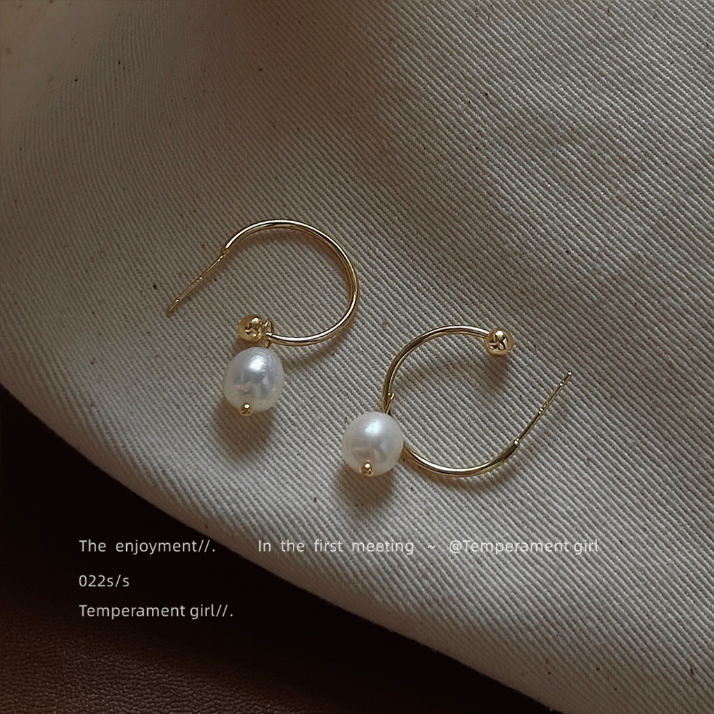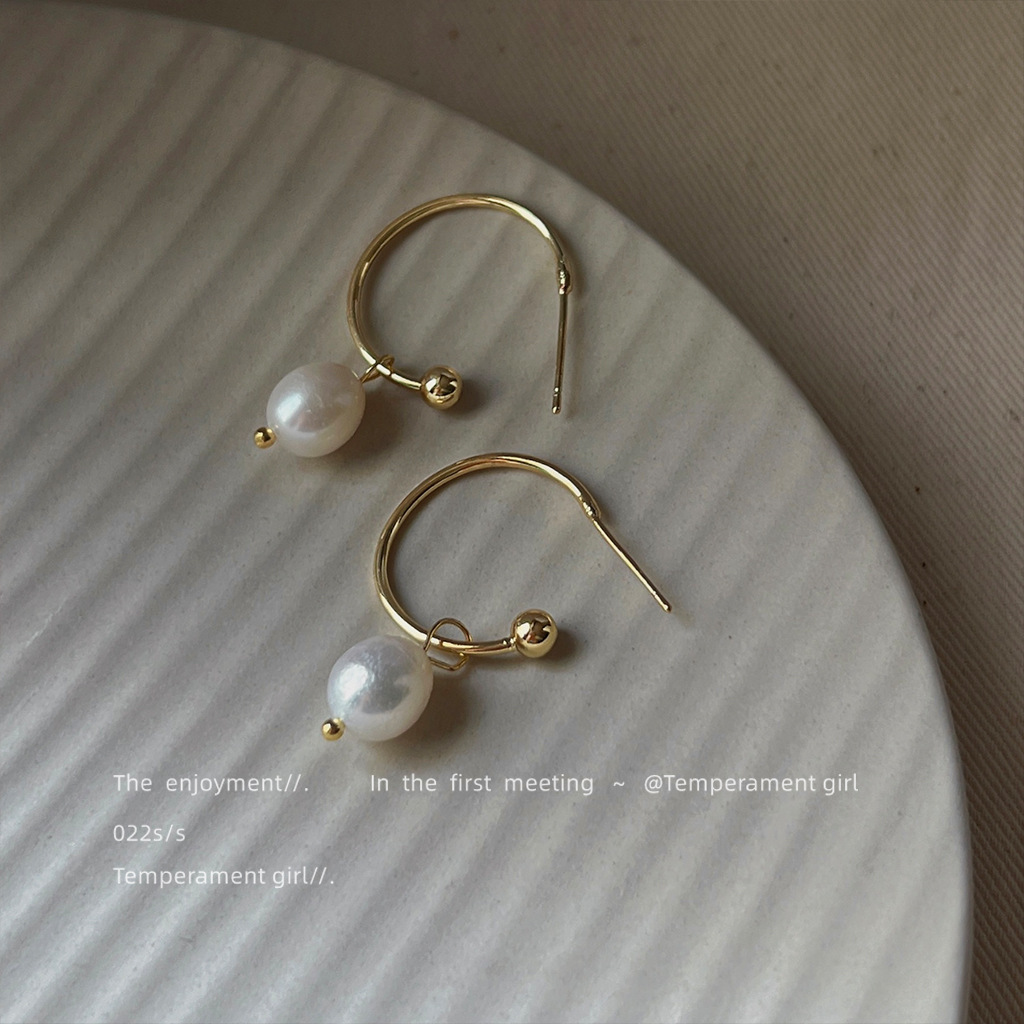 Stunning S925 Silver 14K Gold Natural Freshwater Pearl C Shape Earrings for Women's Charm and Versatility