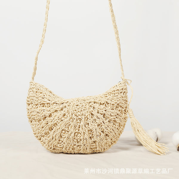 Fashion Small Capacity Half Round Straw Weaving Bag, Diagonal Cross Female Bag for Leisure