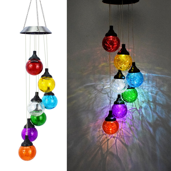 Modern Garden Ambience Decoration Pendant Outdoor Solar Glass Ball Colorful Wind Chime Light