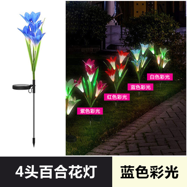 Outdoor Rainproof Courtyard Ground Insert Solar Simulation Four Heads Lily Lamp