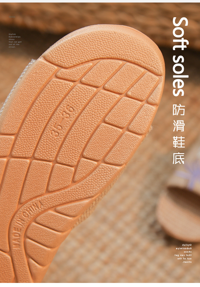 - ["EVA outsole, breathable and anti-skid","Linen upper material, fashionable and durable","Suitable for spring, summer and autumn","Shock absorption and sweat-absorbent","Lightweight and comfortable"]