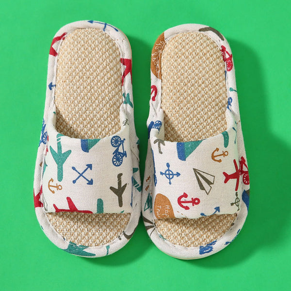 - ["Cute cartoon design for kids","Made of breathable linen material","EVA midsole for comfortable wearing","Slip-on closure for easy on-off","Perfect for summer, spring and autumn"]