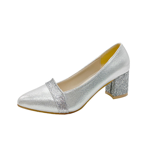Women's Korean Style PU High Heel Shoes with Shinning Beads for Everyday and Party Wear
