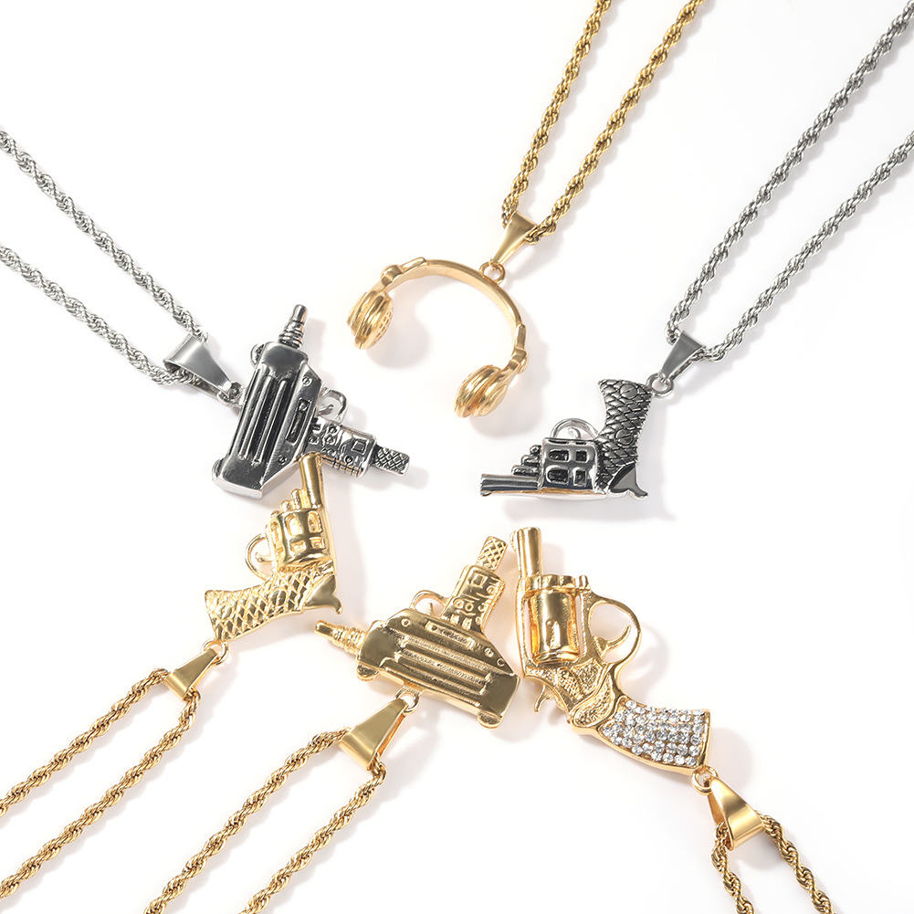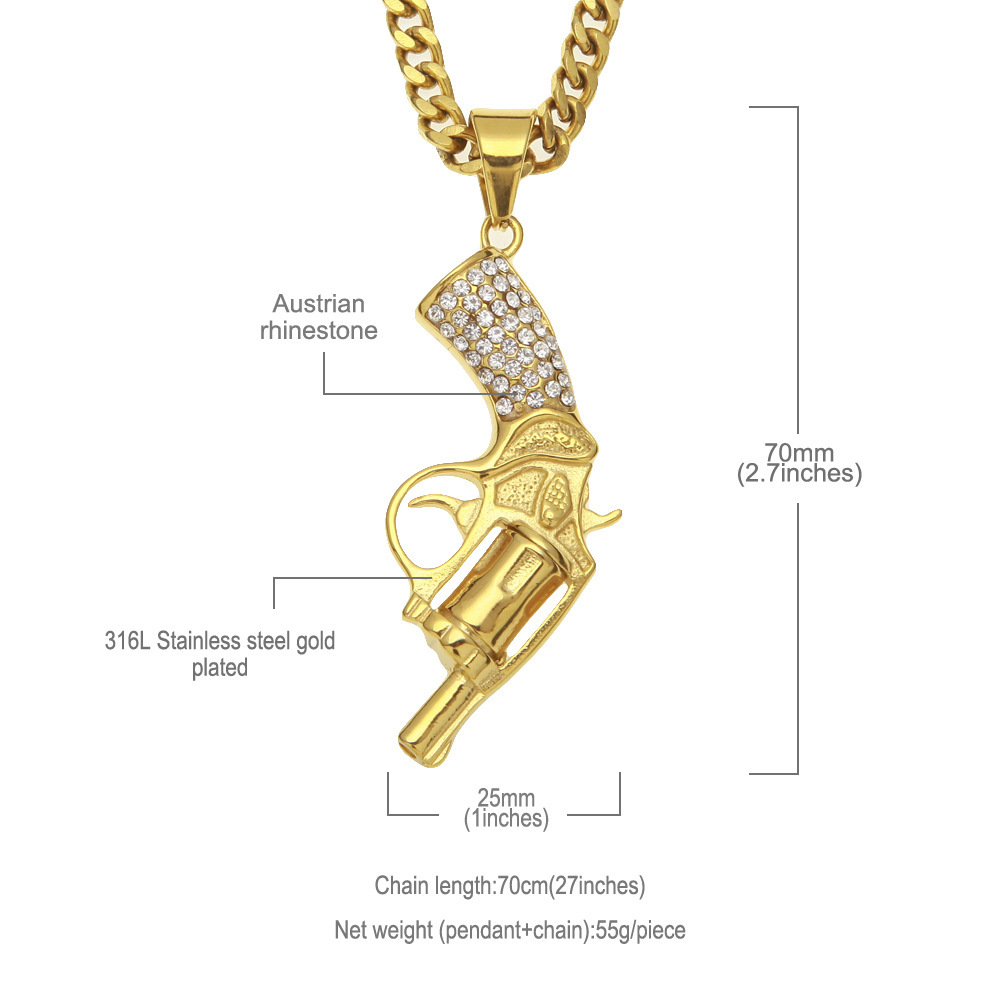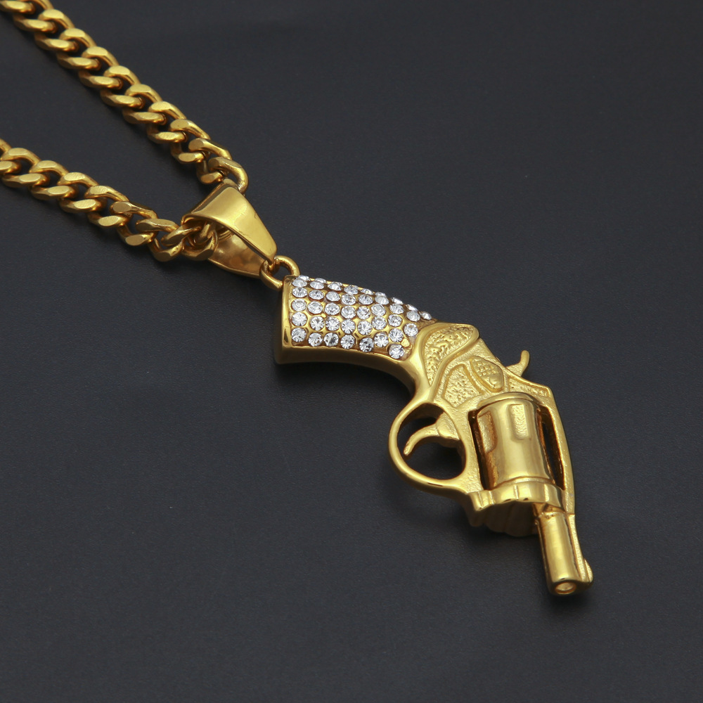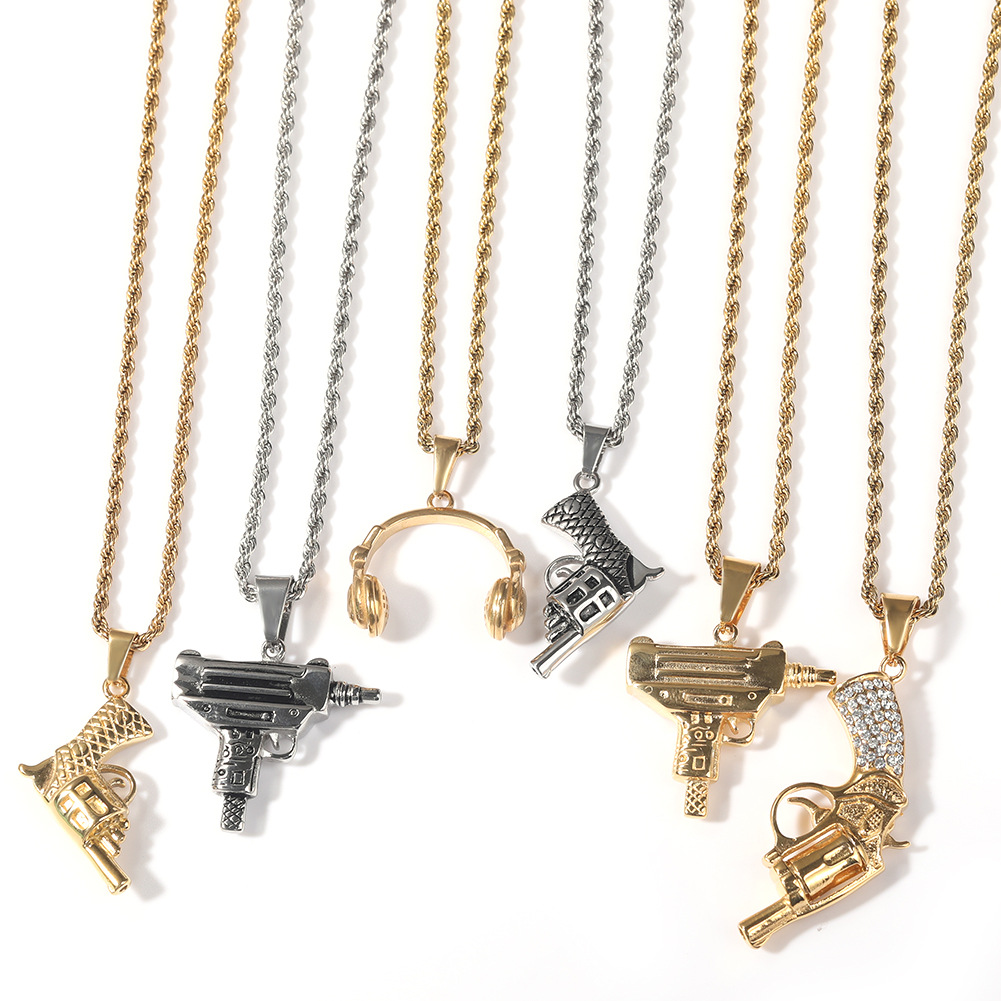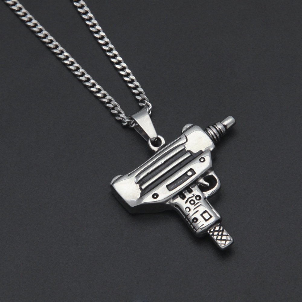 Men's Street Hip-Hop Style Stainless Steel Gun Necklace Sweater Chain Accessories