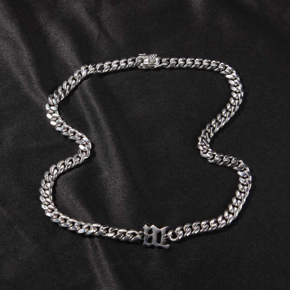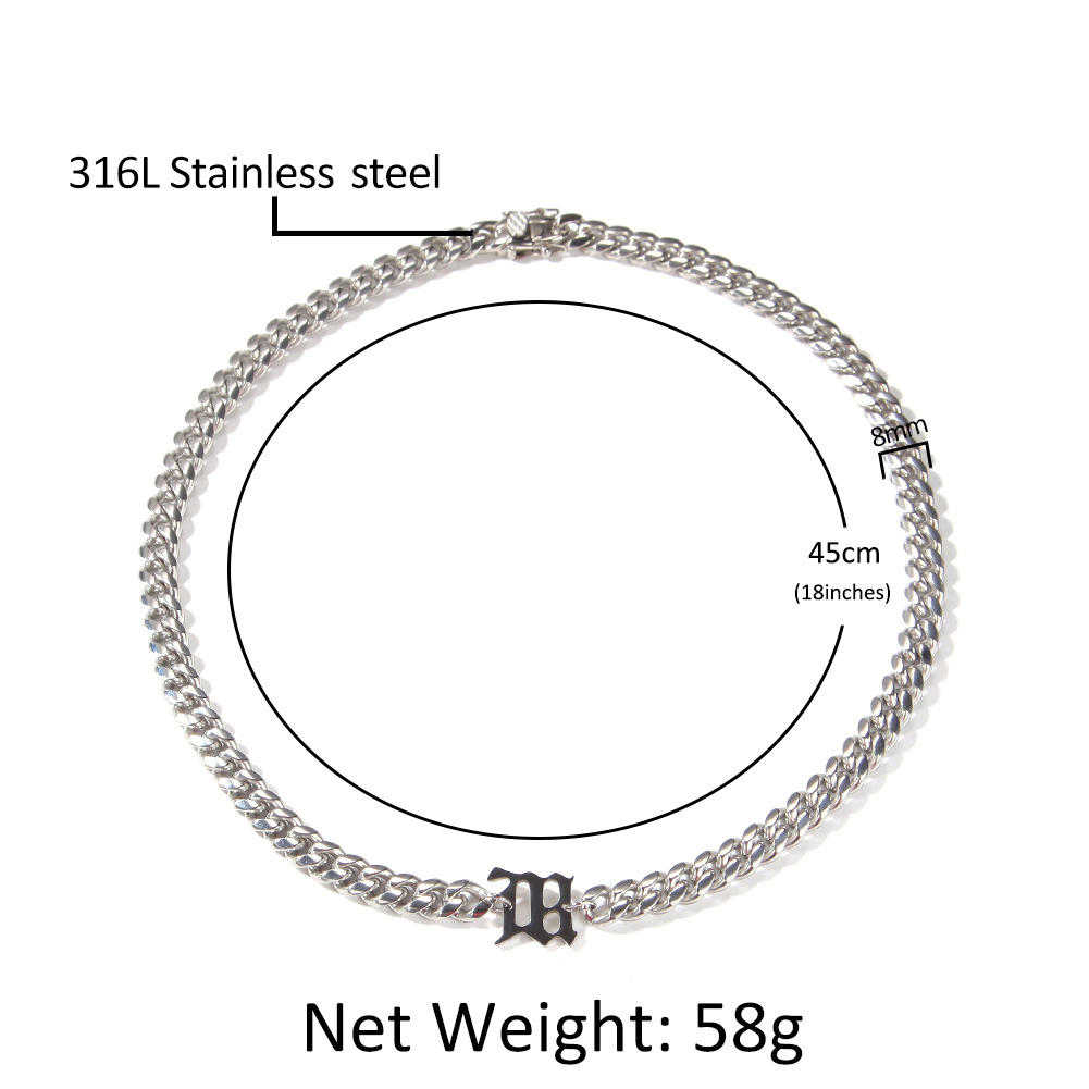 Retro Hip Hop 8mm Titanium Steel Letter Chain with Cuban Link