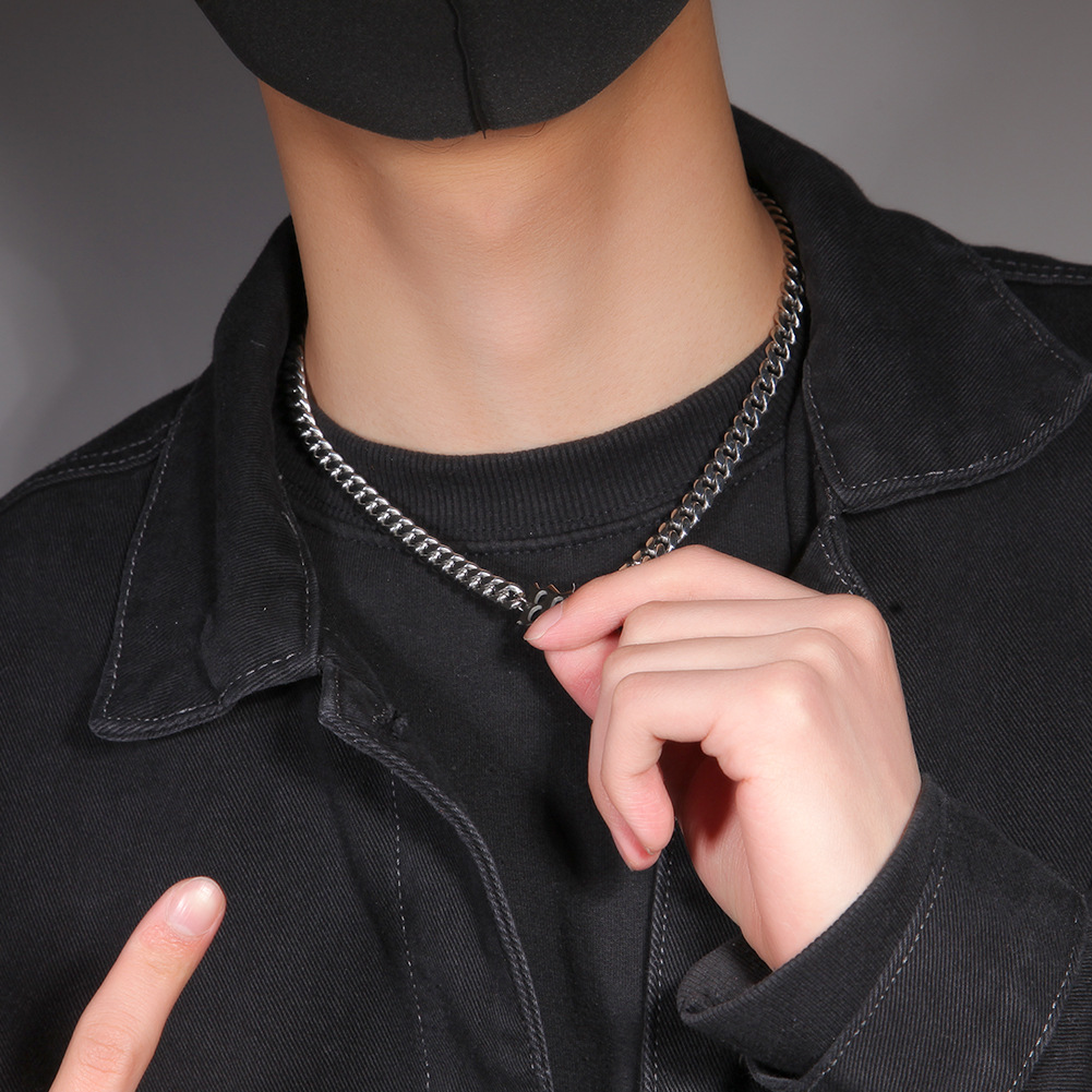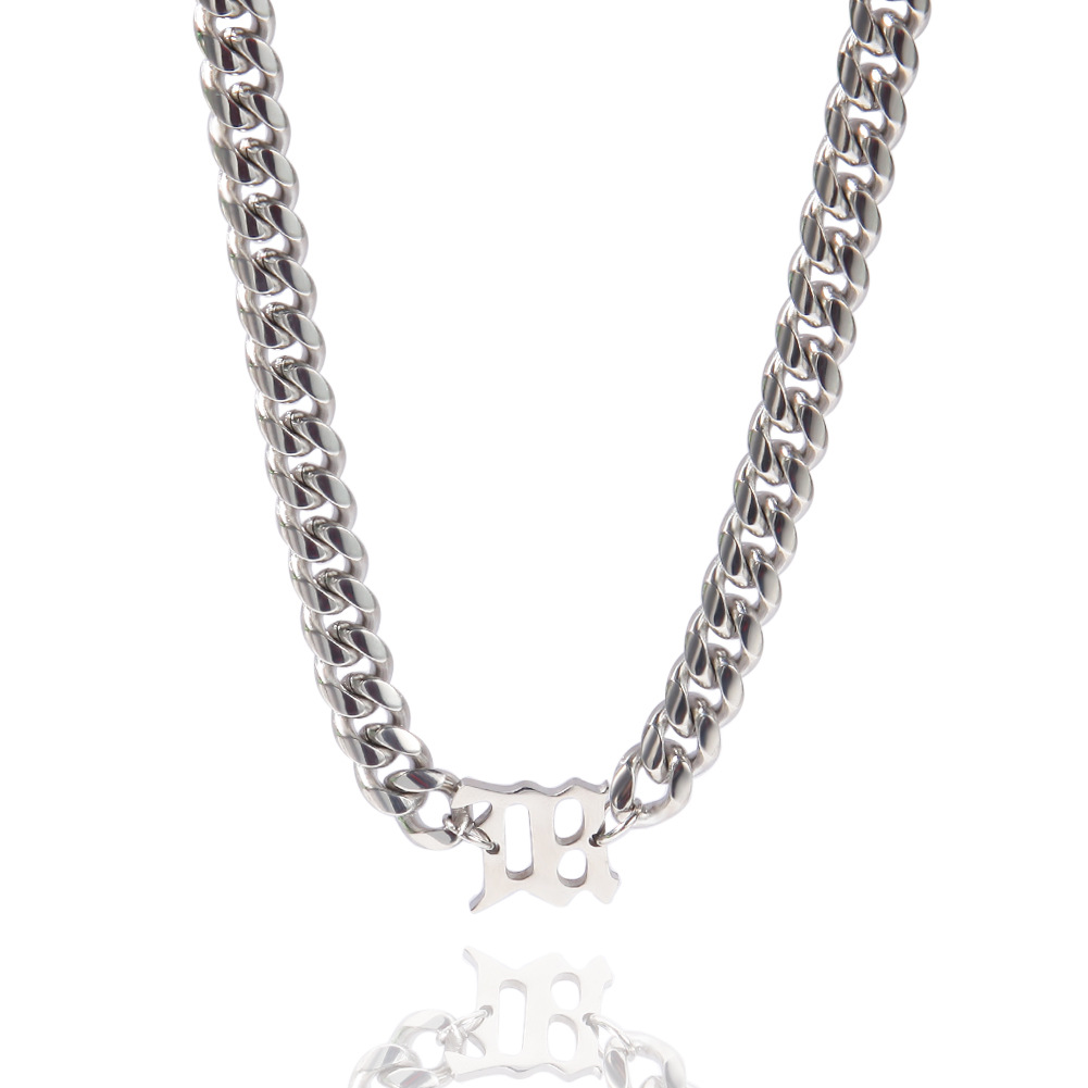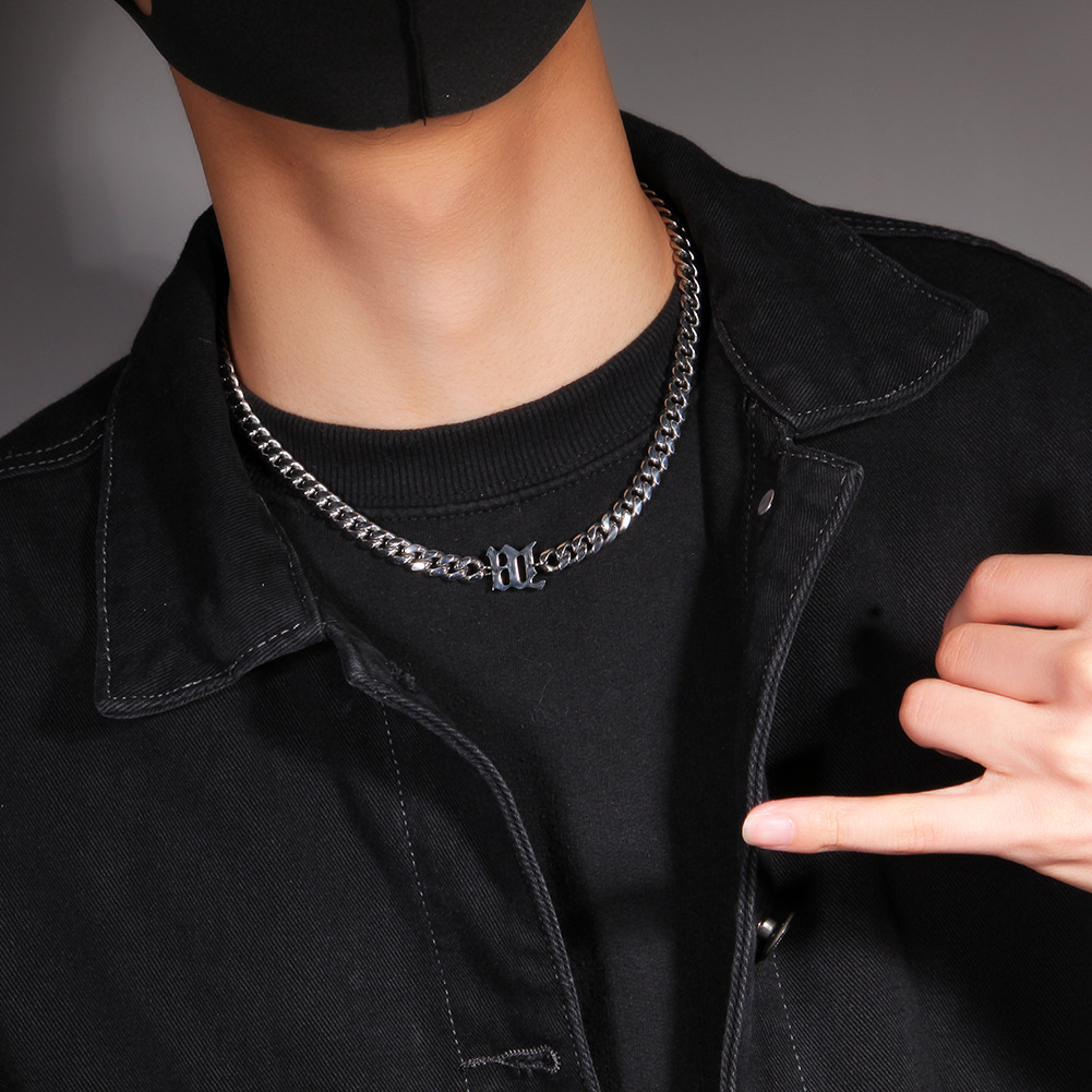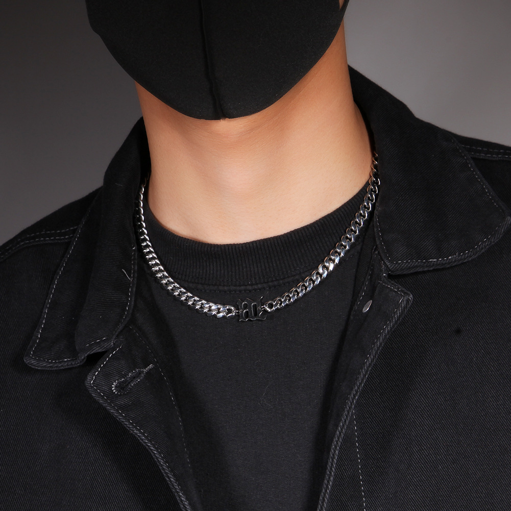 - ["Retro hip hop style","8mm titanium steel","Letter chain with Cuban link","Unisex style","Electroplating process"]