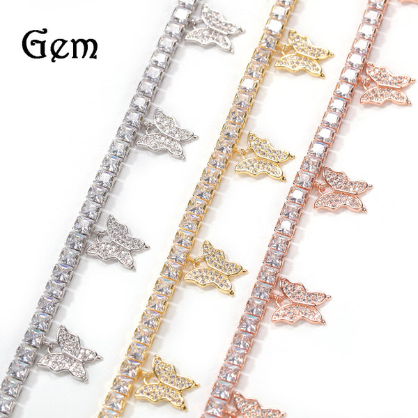 Fashionable European and American Style Glamorous Butterfly Anklet with Zircon Stones