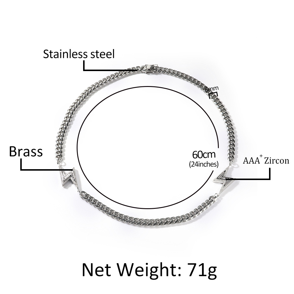 - ["Unique and stylish design with Cuban chain necklace","Made of stainless steel material, durable and long-lasting","Electroplating processing craft, anti-rust and anti-corrosion","Suitable for men's streetwear fashion","Length: 21cm(Including)-50cm(Including)"]