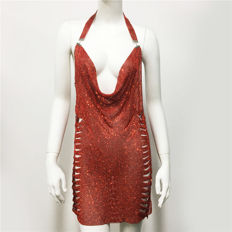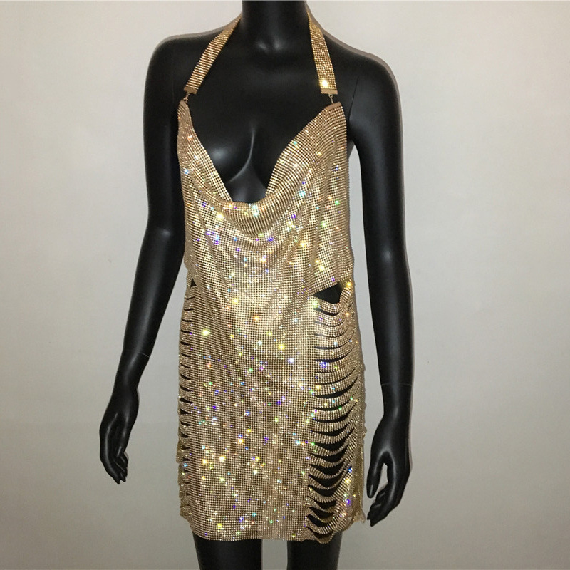 {"Style":"Sexy Style","Origin":"Yiwu","Pattern":"Plain Grid","Placket":"No Button","Skirt Type":"A-Line Skirt","Style Type":"Private Celebrity","Waist Type":"Super Low Waist","Collar Type":"V-Neck","Fabric Name":"Metal","Sleeve Type":"Sleeveless","Skirt Length":"Mini Skirt","Craftsmanship":"Pasting/Piecing","Sleeve Length":"Sleeveless","Fashion Element":"Sequins and Sparkle","Combination Form":"Single Piece","Cross-border Style Type":"Sexy and Hot Girl","Main Fabric Component 2":"Glass","Main Fabric Composition":"Metal","Main Fabric Component 2 Content":"30% or less","Main Fabric Composition Content":"90% (Excluding) - 95% (Including)"}
