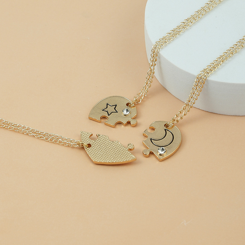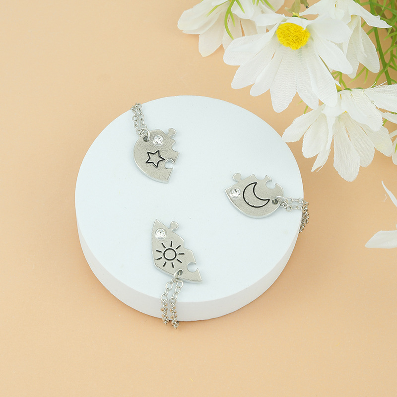 3-Piece Friends Series Jewelry Set with Sun, Moon and Stars Pattern and Rhinestone Decoration