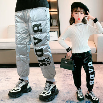 Girls Korean Style PU Leather Safety B Pants Winter Warmth 85% Cotton Long Pants for 8-140cm Age