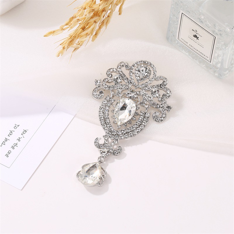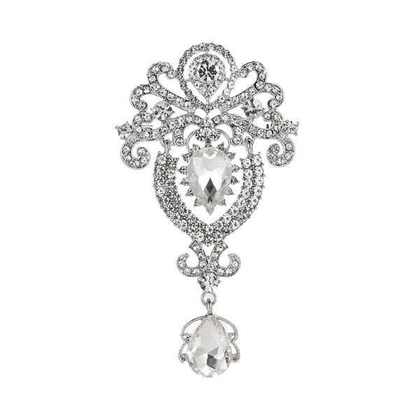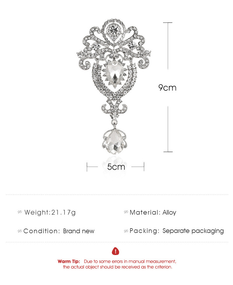 - ["Fashionable crown design","Made of alloy, rhinestone and crystal","Suitable for women","Comes with a pin back for easy wearing","Ideal for special occasions"]
