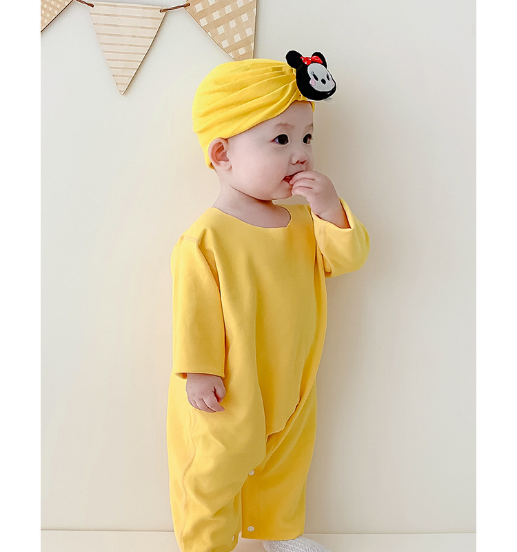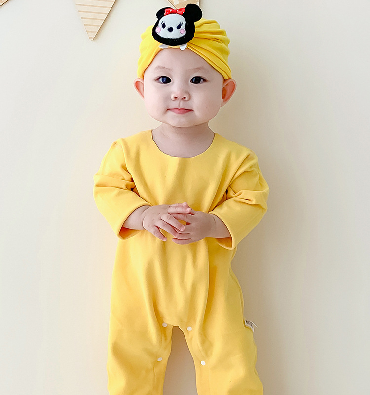 Newborn Baby Warm Solid Color Jumpsuit 3-18 Months No Bone Seamless Protection Tummy for Outing Crawling Clothes