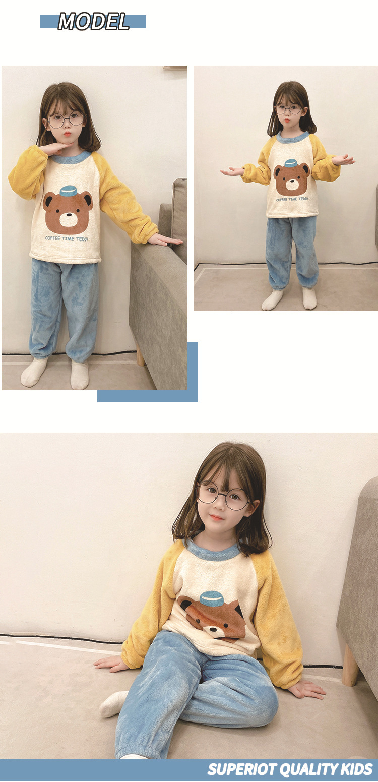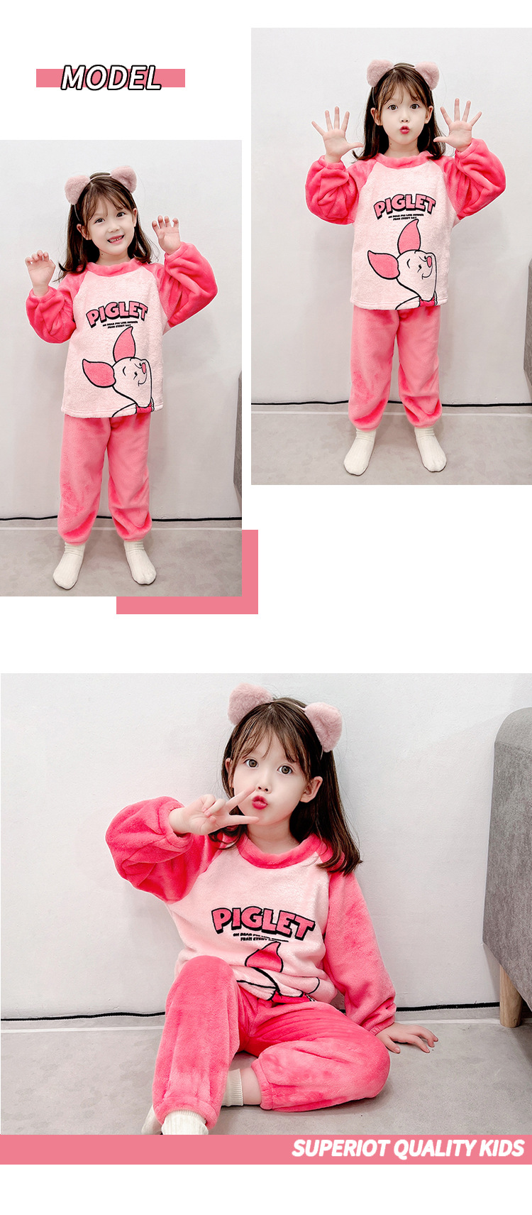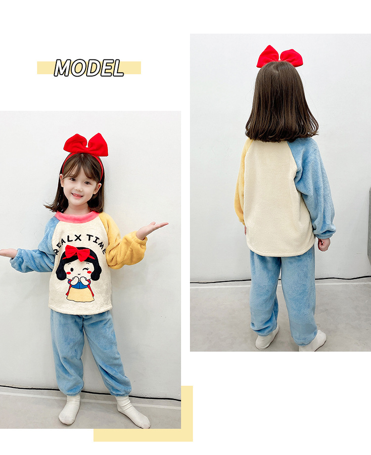 Girls' Cartoon Coral Fleece Sleepwear 3-16 Years Old, Warm and Comfortable, Suitable for Winter and Autumn
