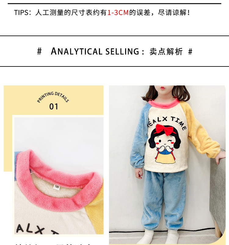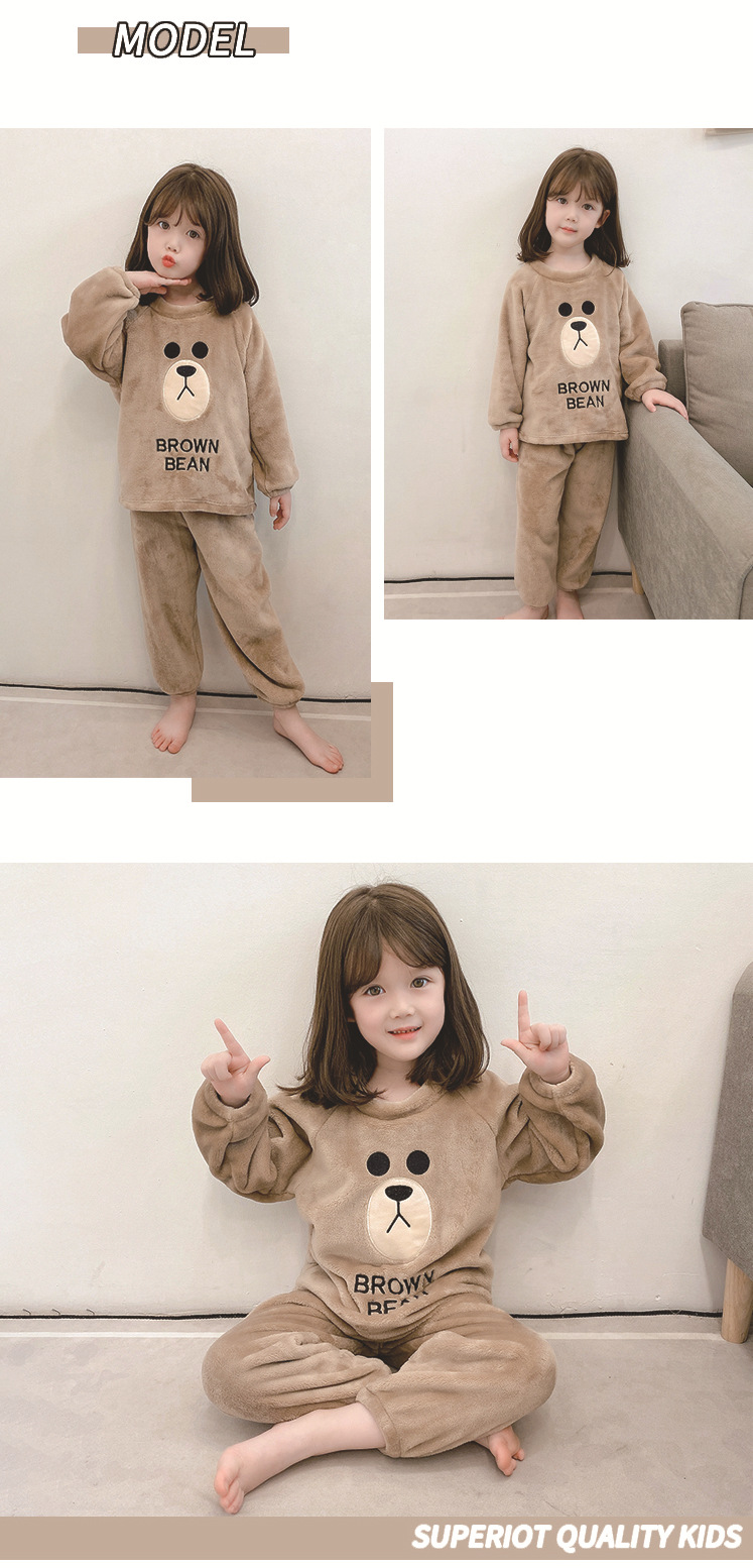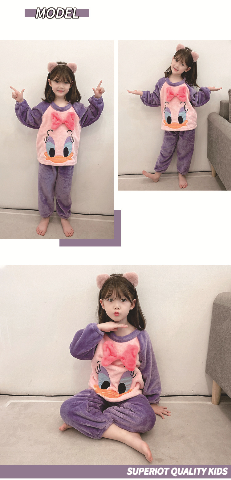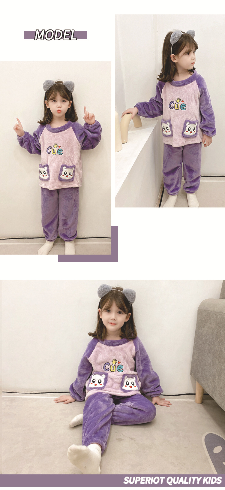 Girls' Cartoon Coral Fleece Sleepwear 3-16 Years Old, Warm and Comfortable, Suitable for Winter and Autumn