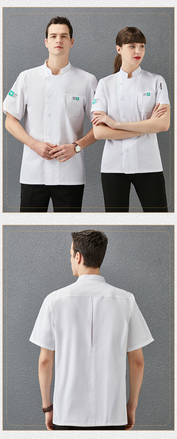 {"Function":"Moisture Wicking","Collar Type":"Stand Collar","Error Range":"1-3","Fabric Name":"Cotton Blend","Pant Length":"Long Pants","Sleeve Type":"Regular Sleeve","Sleeve Length":"Short Sleeve","Product Category":"Clothing","Applicable Occasion":"Chef Uniform","Gender Applicability":"Unisex/Both Men and Women","Seasonal Suitability":"Summer","Content of Main Fabric":"30","Main Fabric Composition":"Cotton","Content of Main Fabric 2":"70","Main Fabric Composition 2":"Polyester (Polyester)","Main Fabric Composition Content":"Less than 30%","Upper and Lower Clothing Classification":"Upper Garment"}