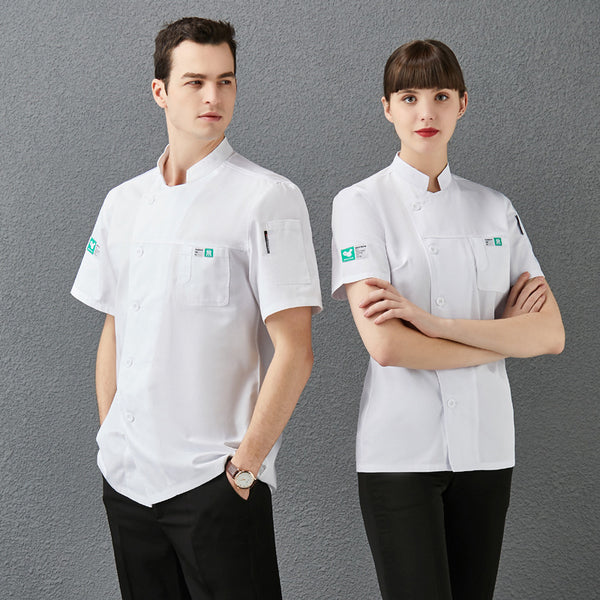 Summer Chef Workwear Short Sleeve Breathable White Food Service Uniform for Men and Women