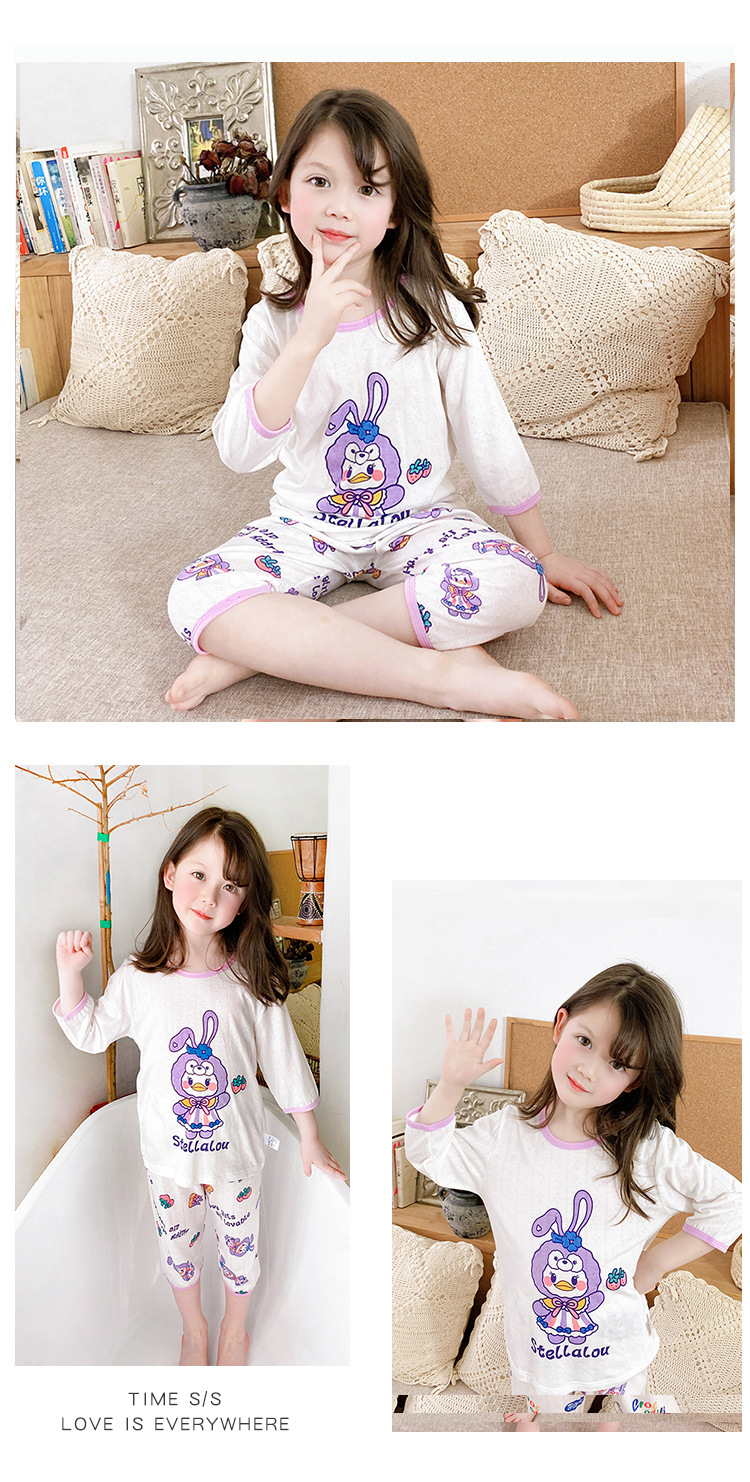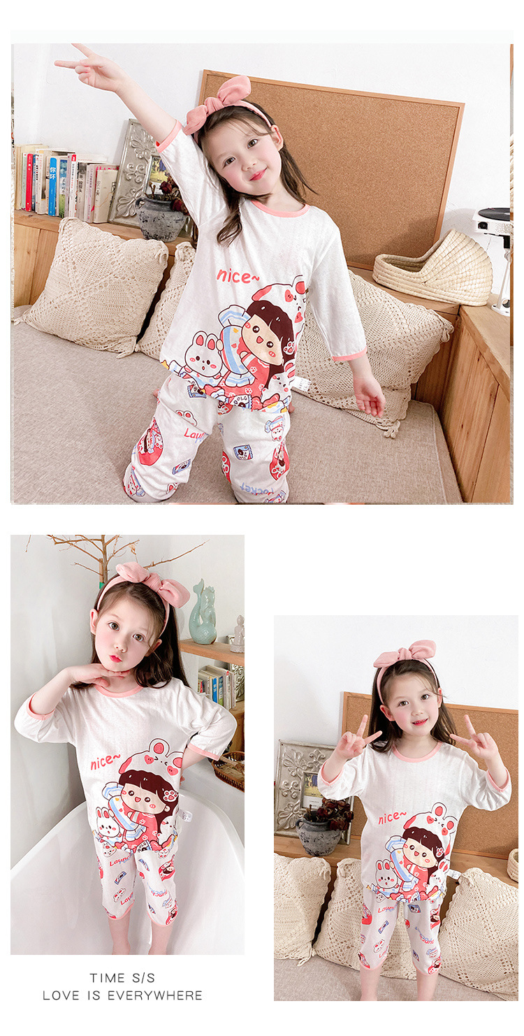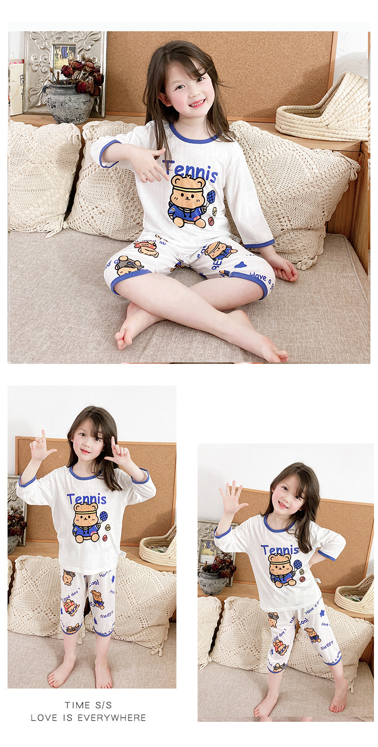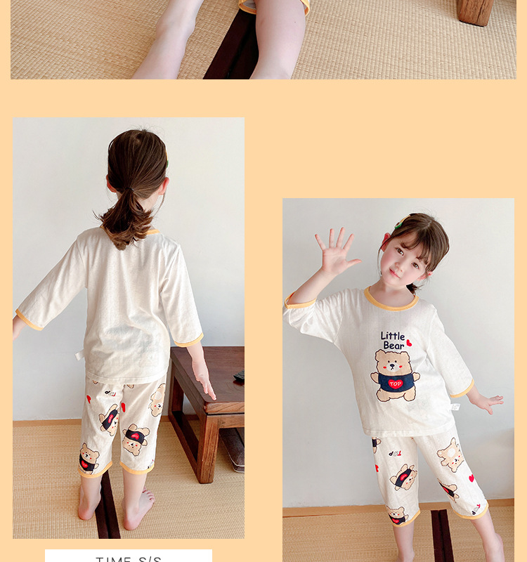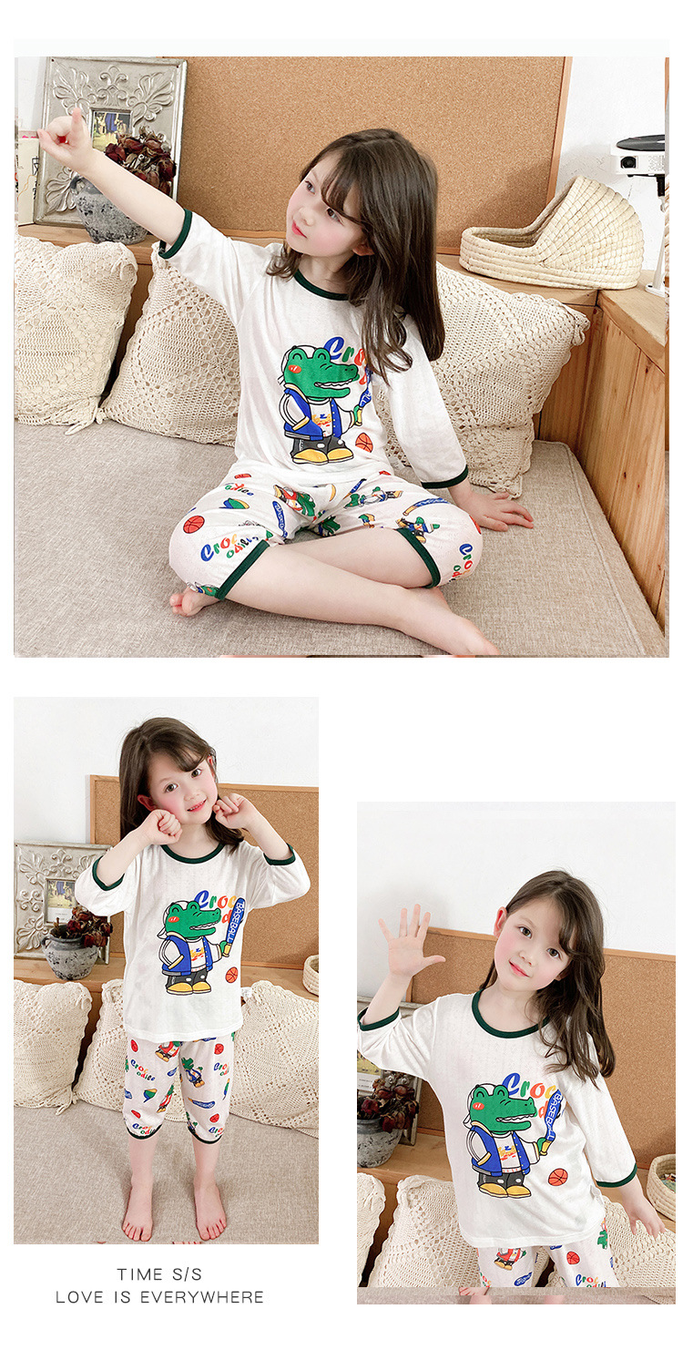 7/7 Sleeve Kids Summer Outfit - Lightweight Bamboo Fiber Home Outfit for 3-15 Years Old