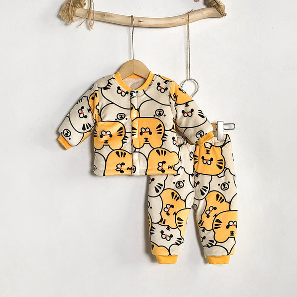 3-18 Months Baby Winter Warm Outfit, Chinese Style, 2-Piece Suit, Long Sleeve Shirt and Long Pants, Suitable for 80-100cm Height