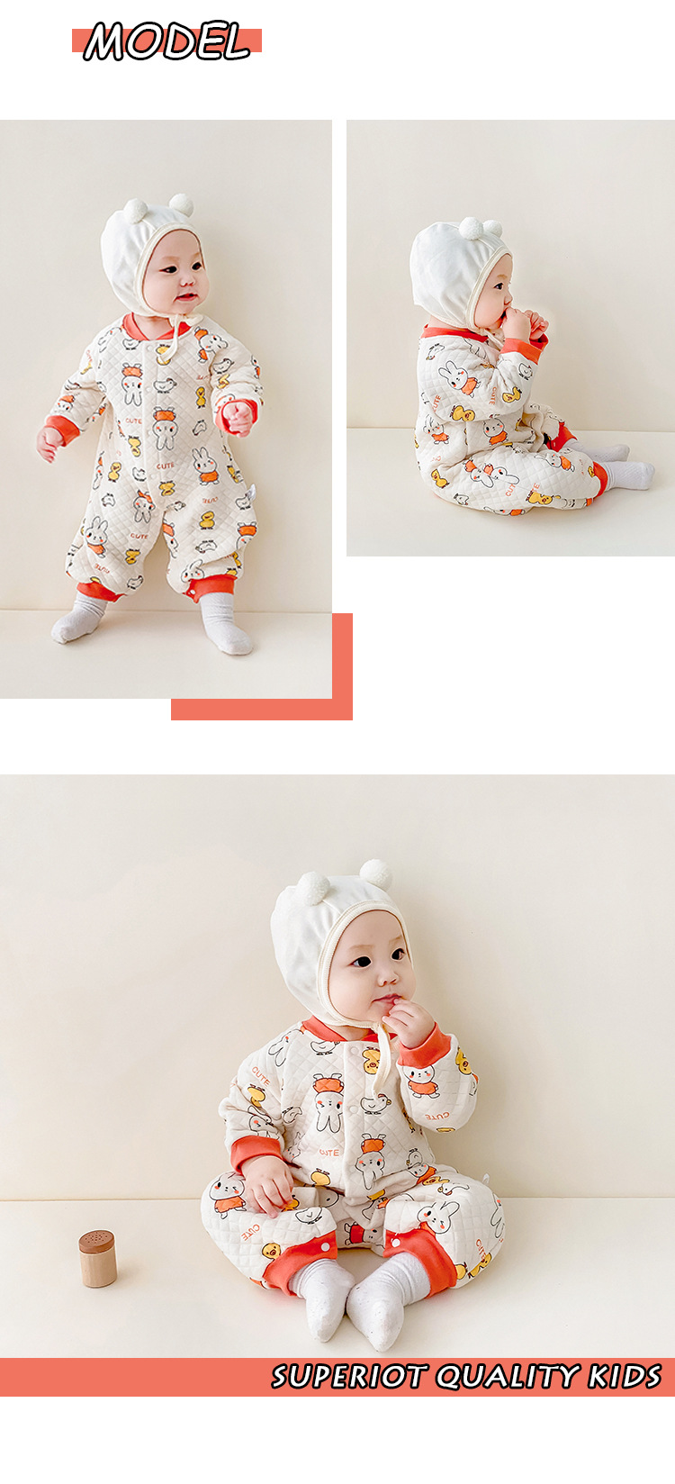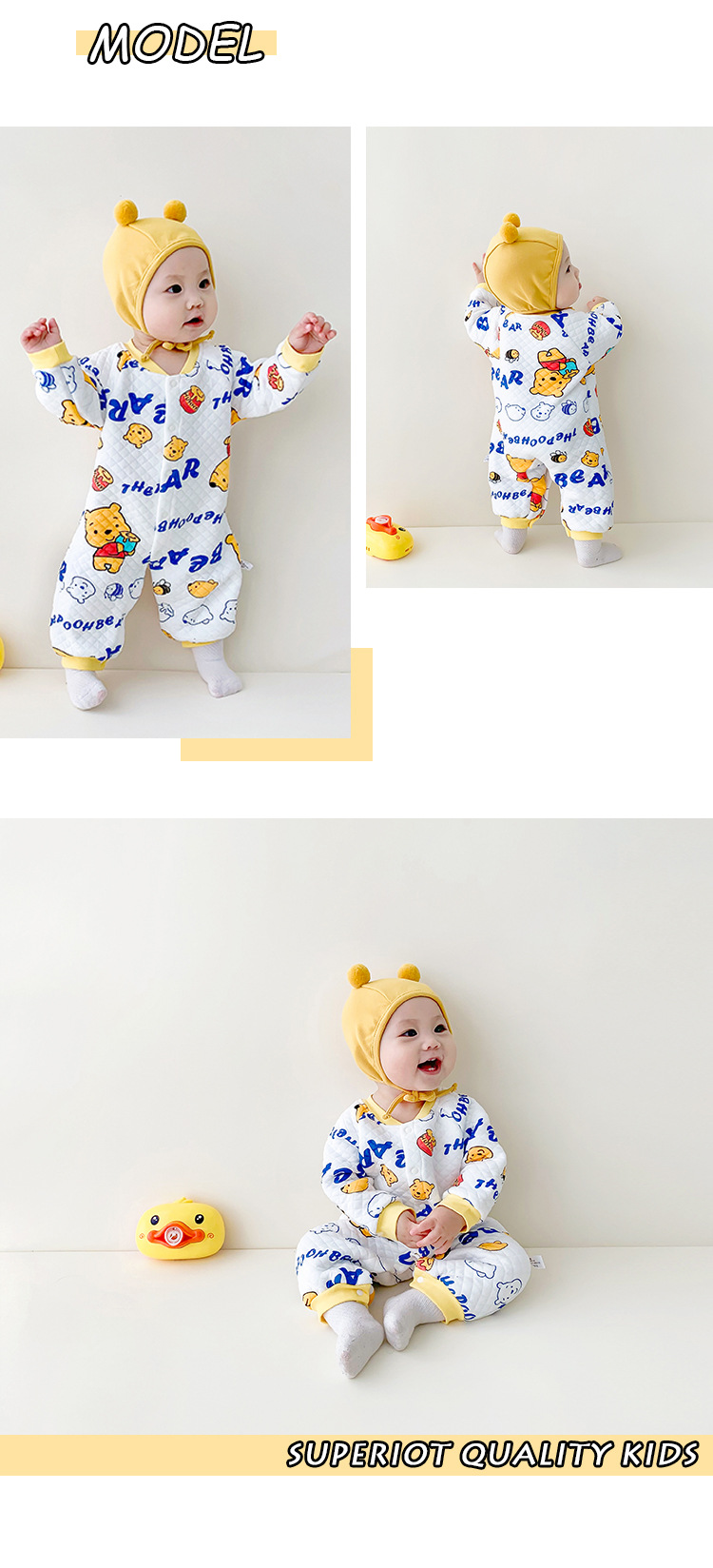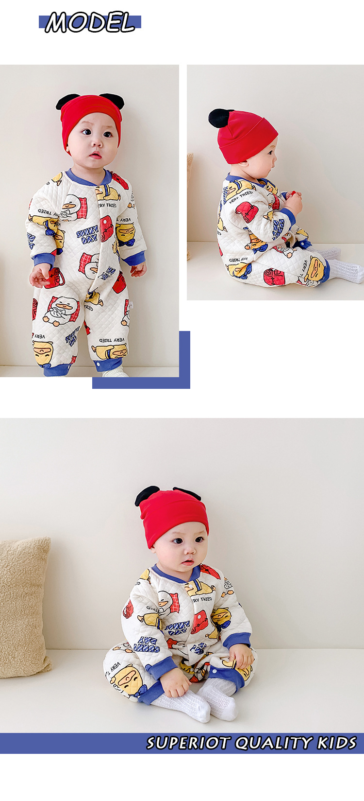 Autumn/Winter Baby Jumpsuit for 3-18 Months, 100% Cotton, Warm and Comfortable