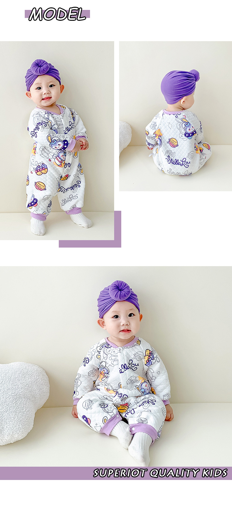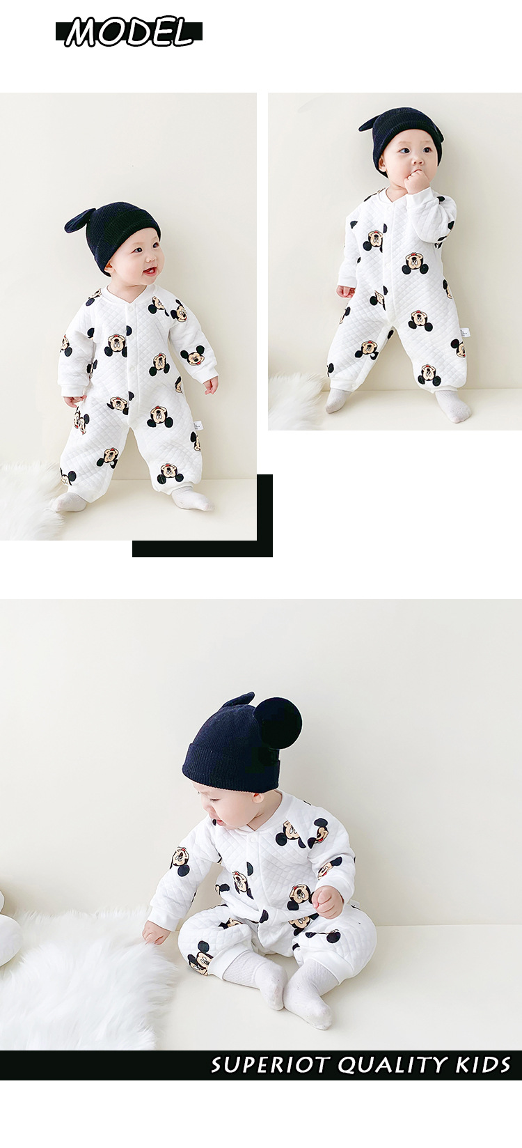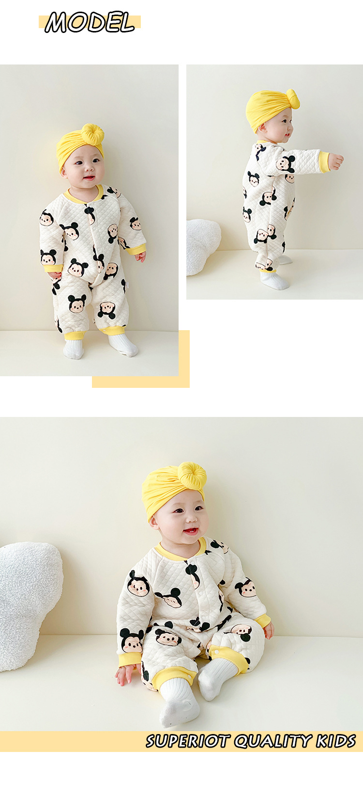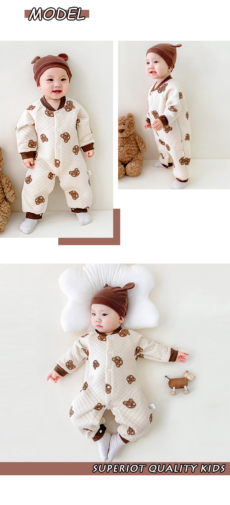 Autumn/Winter Baby Jumpsuit for 3-18 Months, 100% Cotton, Warm and Comfortable