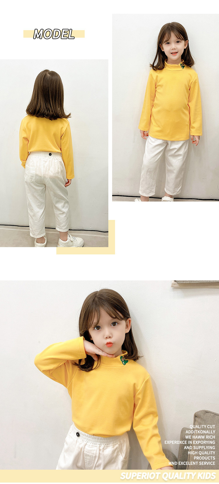Girl's Cartoon Embroidery Sweatshirt 3-15 Years, Autumn and Winter, Long Sleeve, B Class Safety, Yangqi Pure Color, Universal