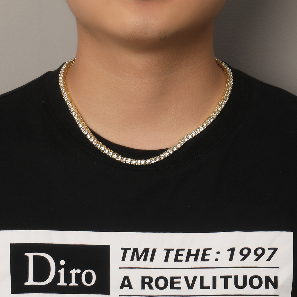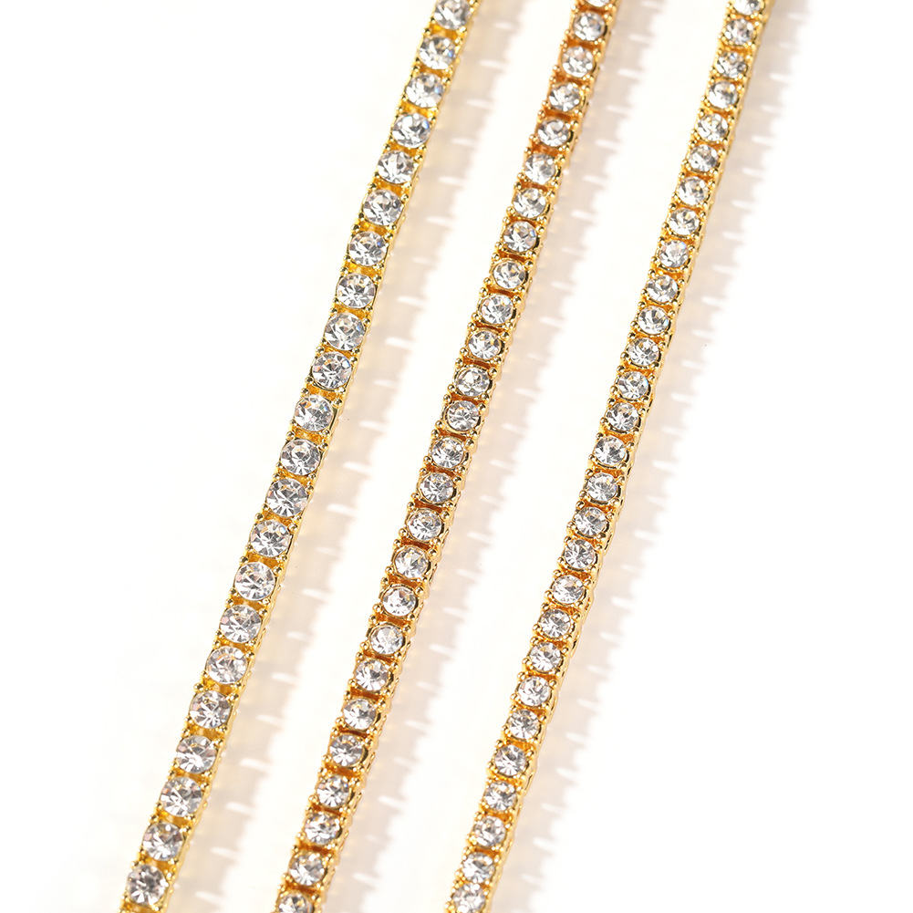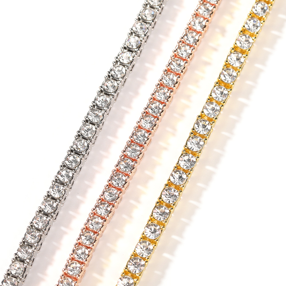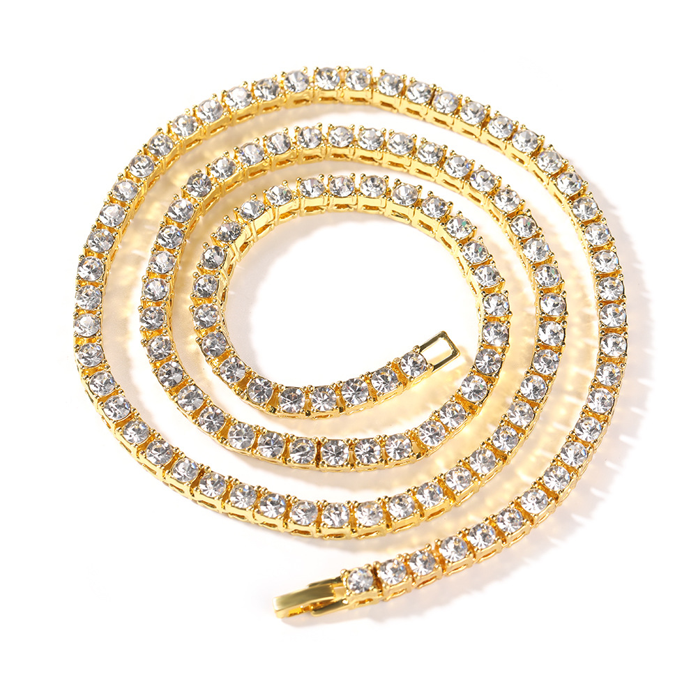 - ["Made of high quality alloy material","Electroplating craft for long lasting color","Tennis chain style for a hip-hop look","21cm-50cm length for various sizes","Suitable for both men and women"]